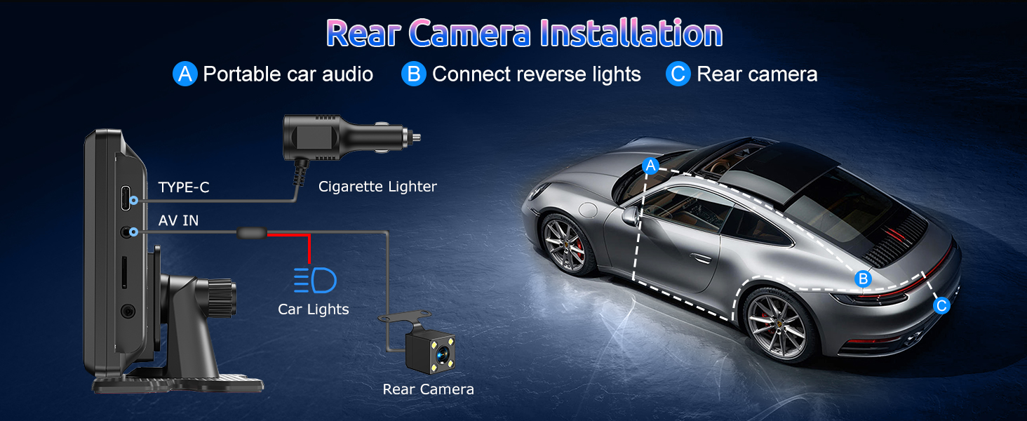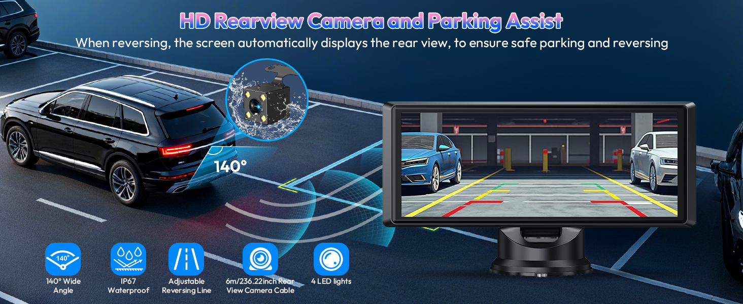 【Reversing Image】This monitor supports rearview camera image input to help you reverse and park safely. (This product includes a rearview camera, you don't need to buy it separately)