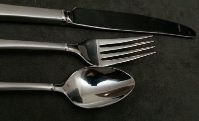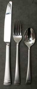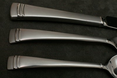 One (1) French Hollow Knife, One (1) Salad Fork, and One (1) Teaspoon by Lenox in the Federal Platinum Frosted pattern.