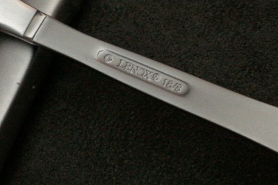 This is a simple yet elegant pattern produced by Lenox Silver circa 2000, it features stainless with a frosted handle, and a glossy bowl.