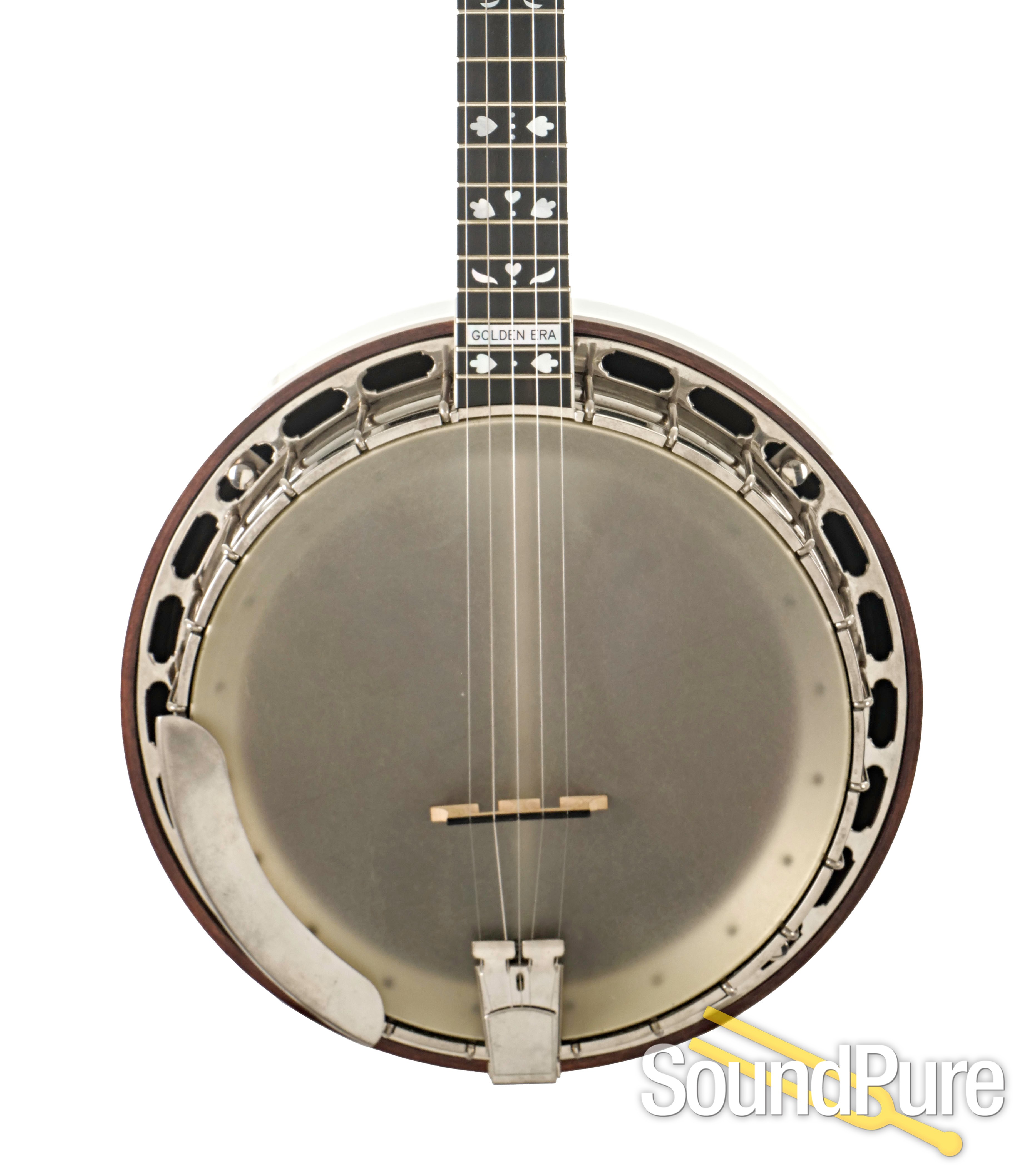 Unlock the authentic bluegrass brilliance with this magnificent Deering Golden Era Banjo! Handcrafted to capture the classic, commanding voice of pre-war instruments, this five-string wonder is an absolute investment in exceptional tone and superior playability. Experience the snappy articulation and deep resonance from the genuine -06- 20 Hole Bell Bronze Tone Ring and violin-grade maple rim. The beautifully flamed, Quartersawn Curly Maple neck, finished in a stunning Cremona Sunburst, features a traditional "U" shape and smooth ebony fingerboard with dazzling Mother of Pearl Hearts & Flowers inlays. This is a robust, rock-solid instrument that offers classic charm and a powerful, clear voice, ensuring you sound absolutely stellar, session after session! This banjo is truly the golden standard for serious pickers.