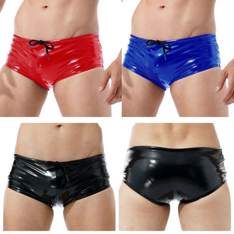 Men’s shiny metallic boxer briefs underwear, low-rised with elastic waistband.