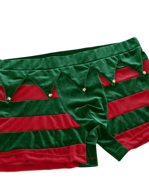 Men’s Christmas holiday fancy cosplay costume striped boxer shorts, pull on closure.