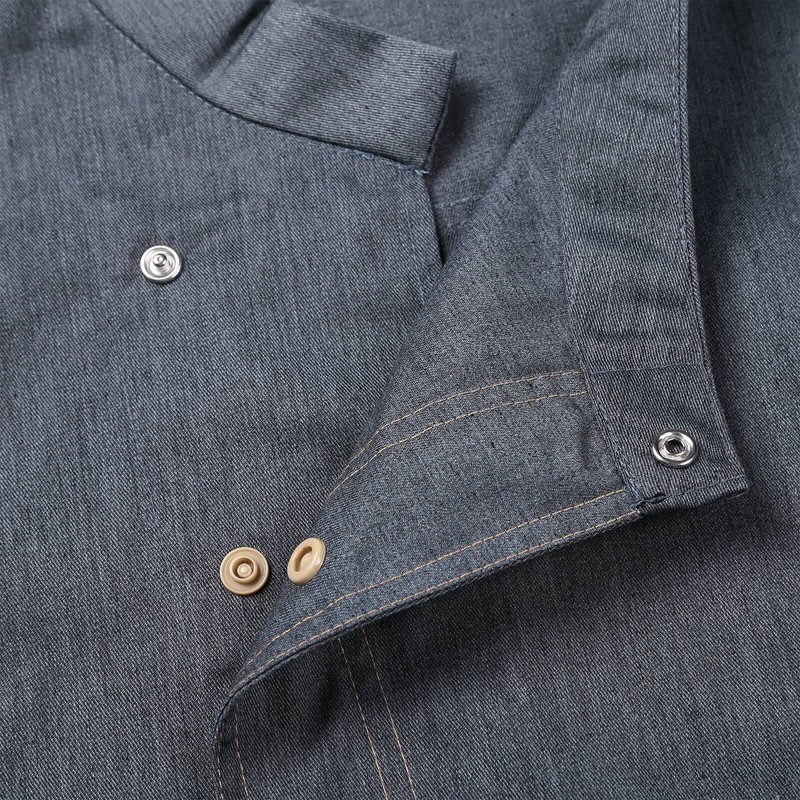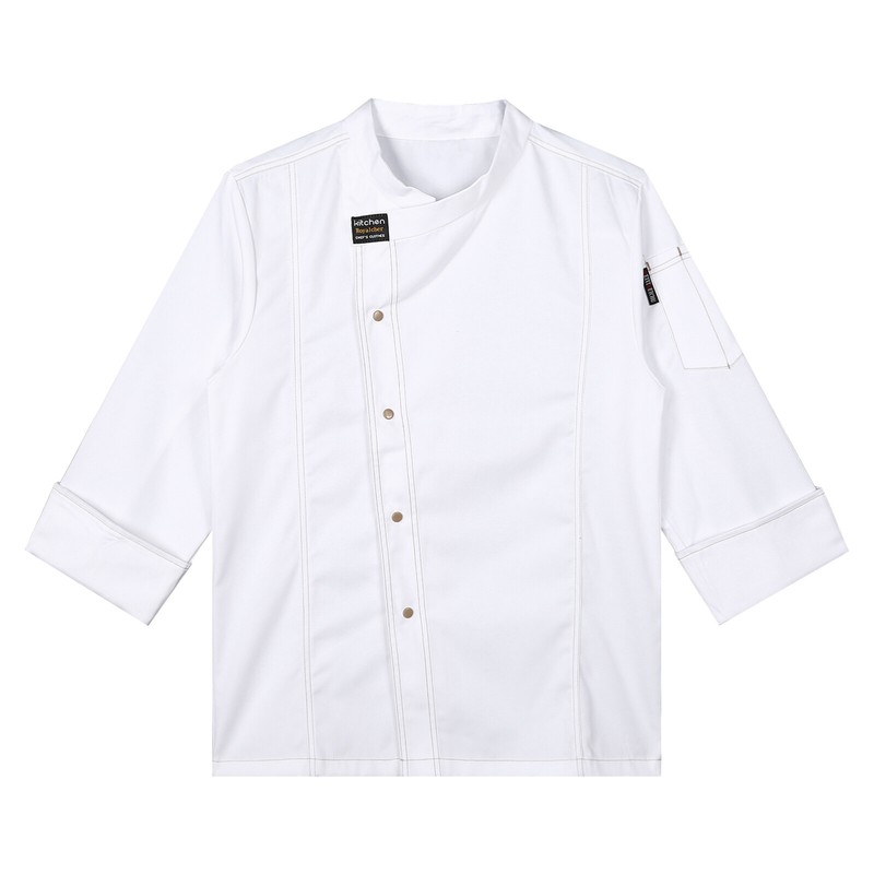 Solid color chef coat for men and women, crossover collar, regular fit, press button closure, convenient to put on and take off.