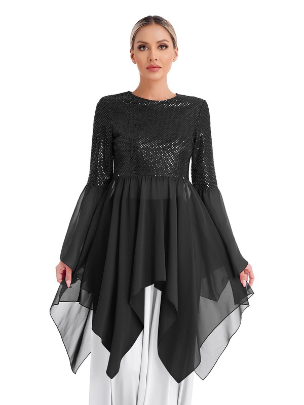 The lower part is made of chiffon with asymmetrical hem, which is great for dancing and perfectly shows the beauty of dance.