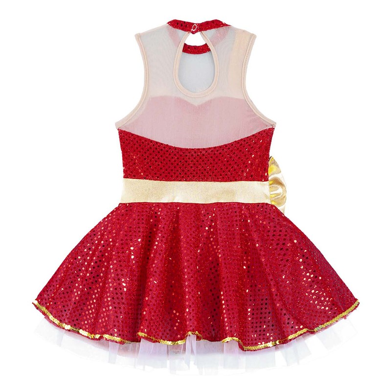 Kids Girls Round Neck Sleeveless Mesh Bowknot Sequins Adorned Dance Leotard Dress.