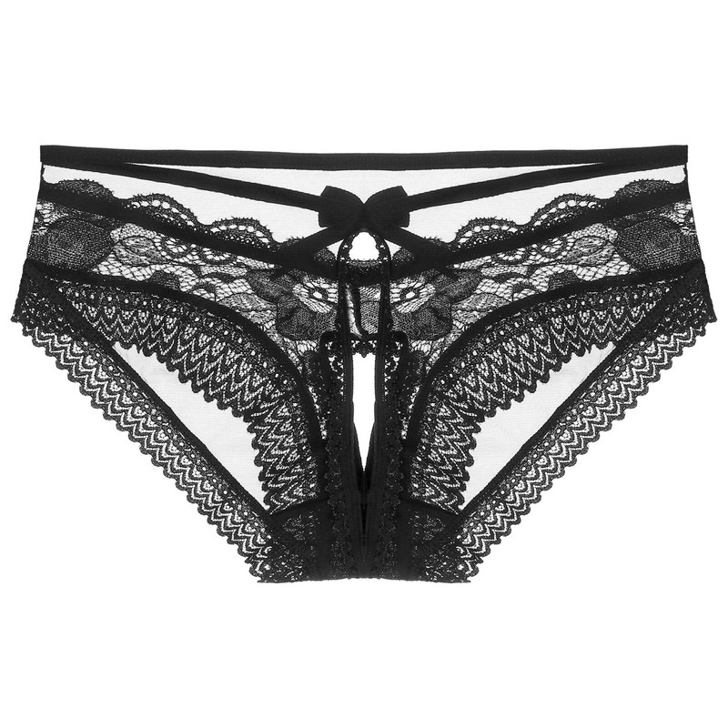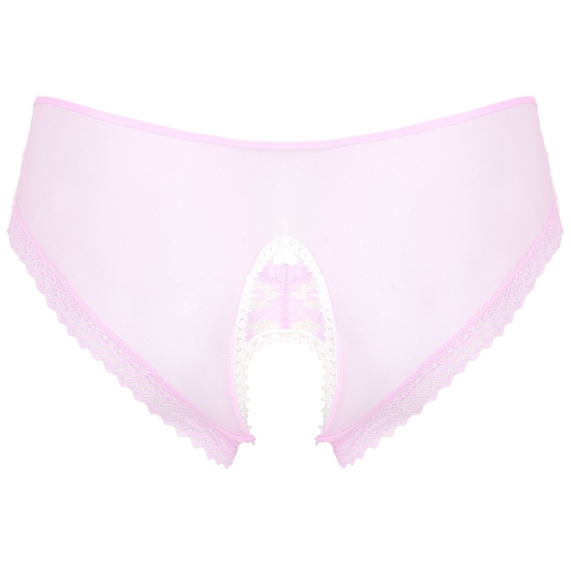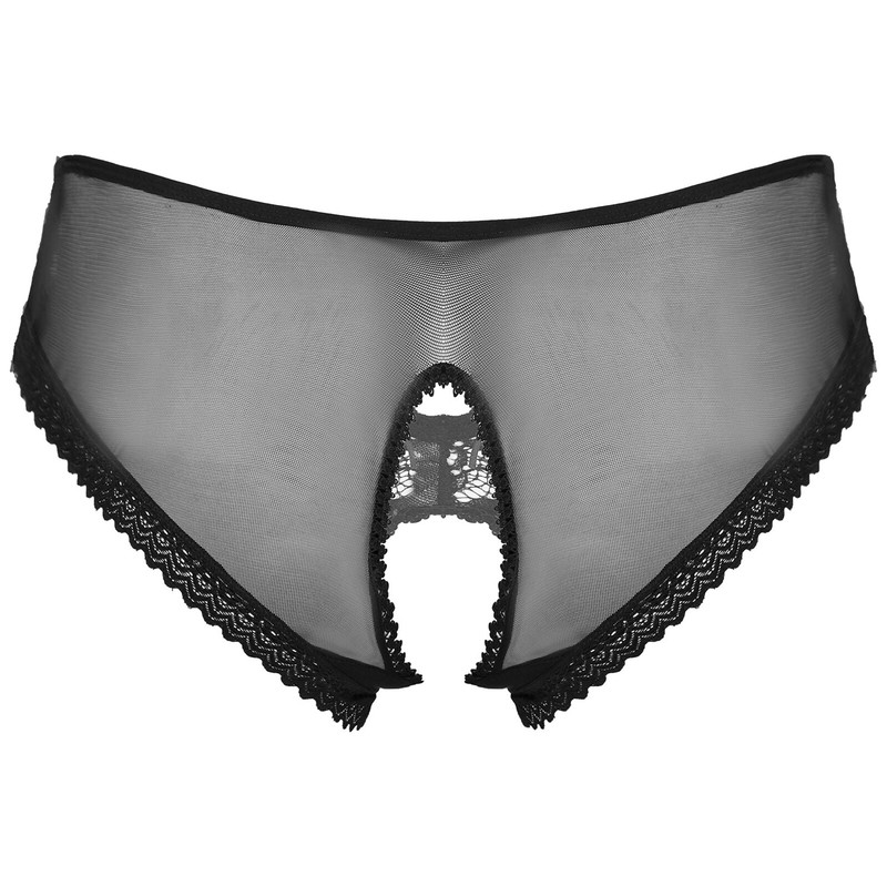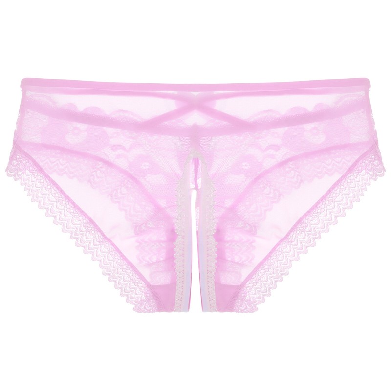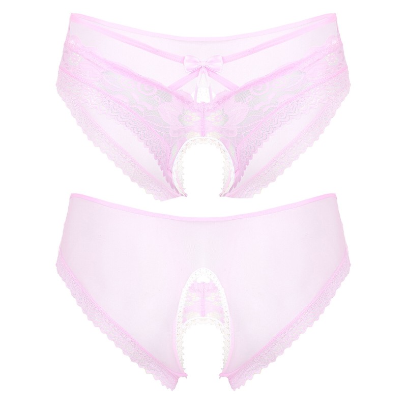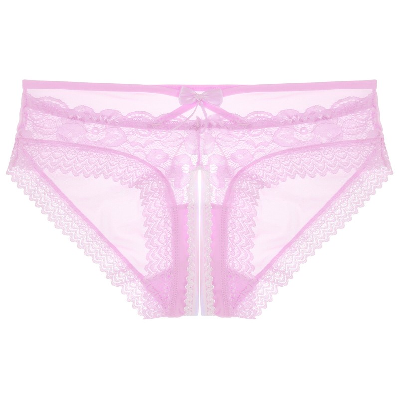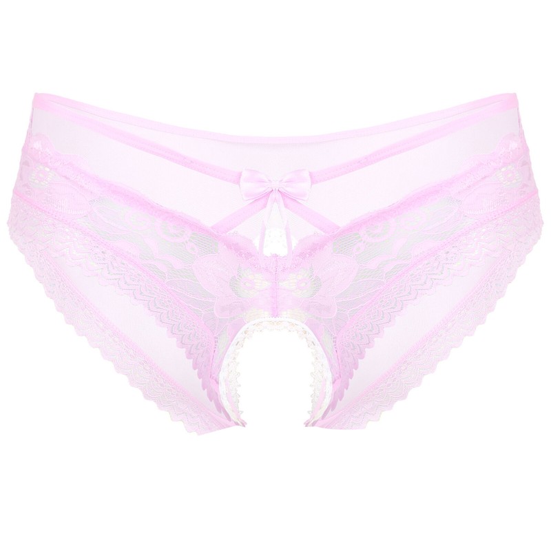 Mens See-Through Lace Briefs Bowknot Strappy Crotchless Underpants.