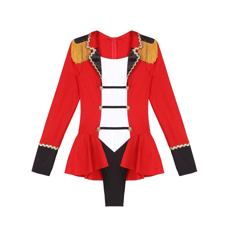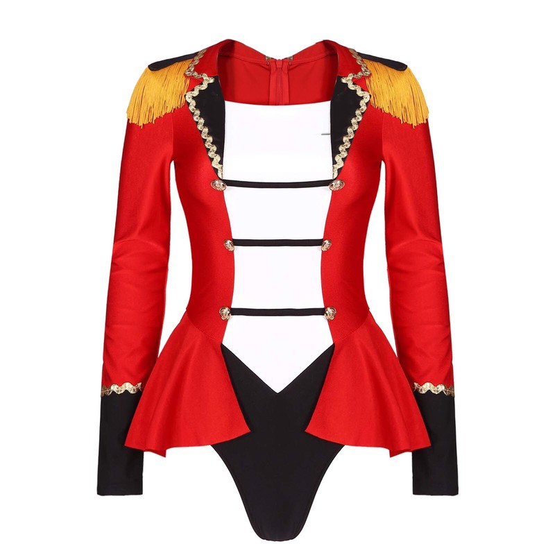 Womens Circus Ringmaster Costume Halloween Showman Long Sleeve Bodysuit.