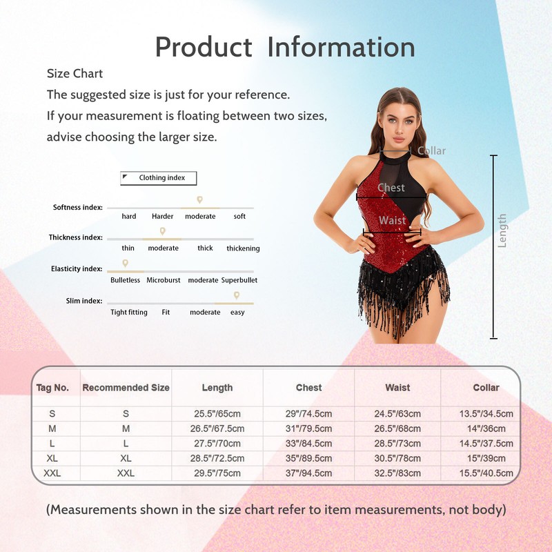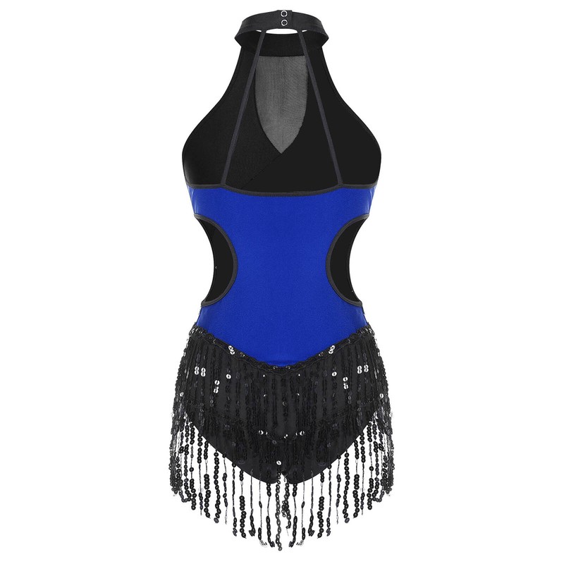 Cutout design on both sides of the waist, decorated with sparkling sequin and tassel, make you more eye-catching.