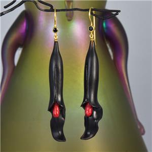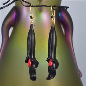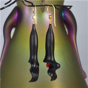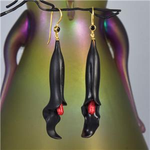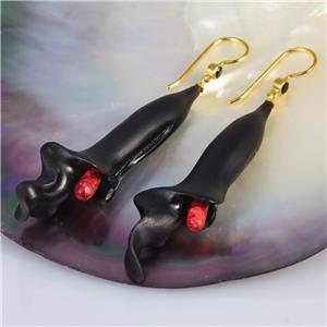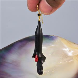 Black horn & Red Sponge Coral with Black Spinel gemstones and 18K Gold Vermeil over solid 925 Sterling Silver hook earrings.