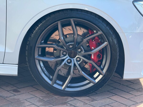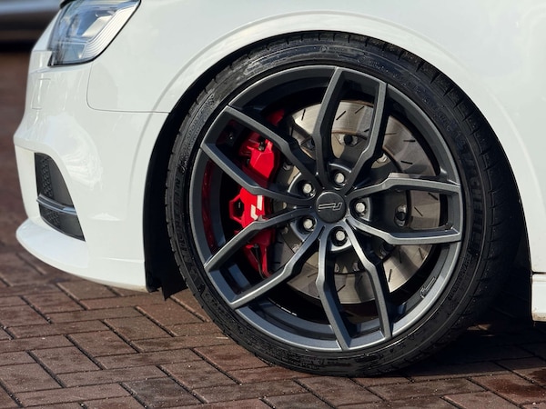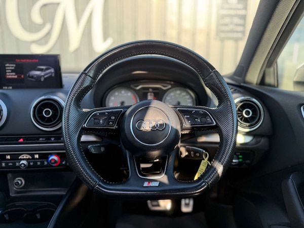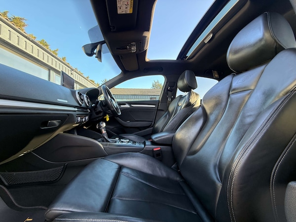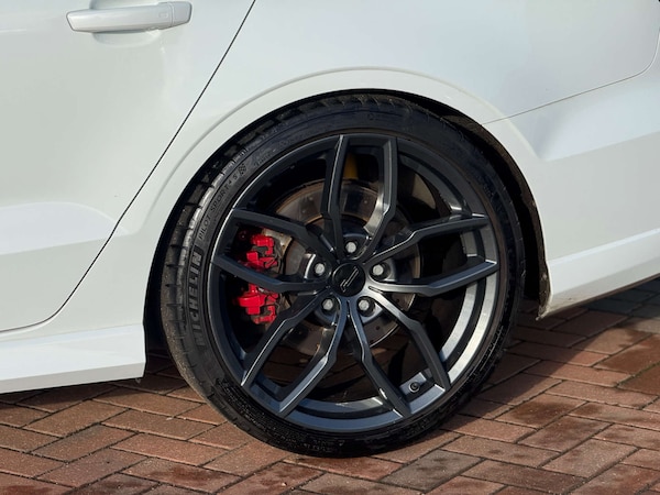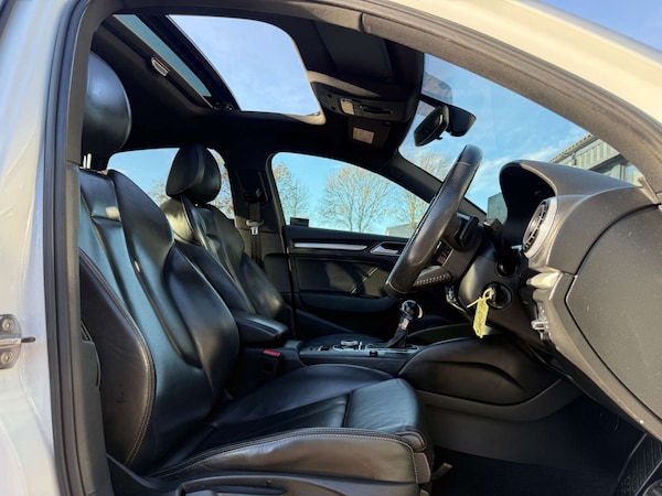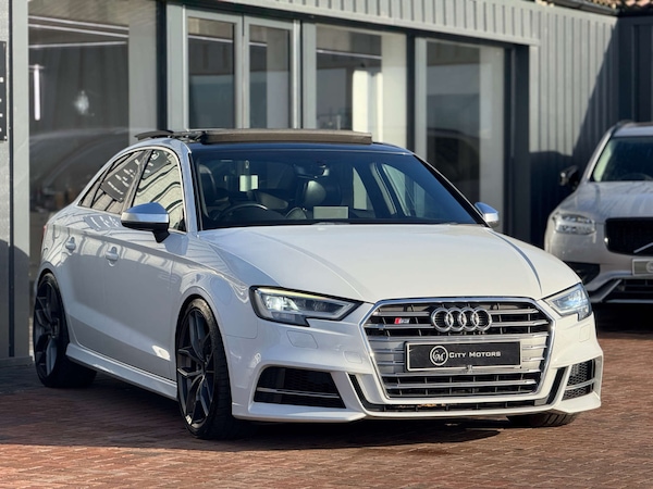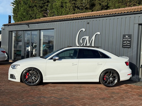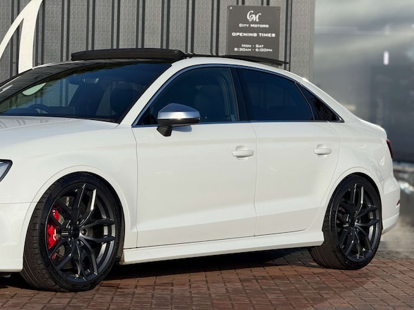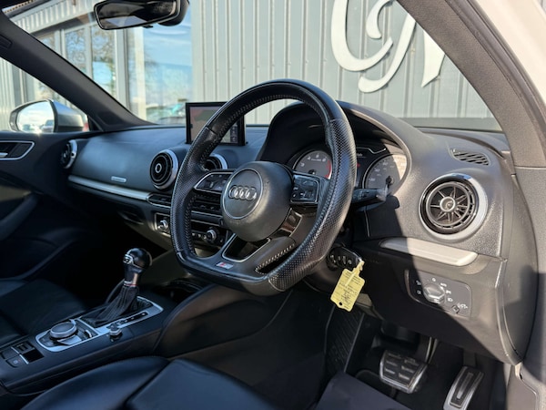 Introducing the Audi A3 2.0 S3 TFSI Quattro Semi-Auto 4WD 4dr – the epitome of sophistication and performance, now available for discerning drivers who demand nothing but the best. This stunning vehicle, with only 60,977 miles on the clock, has been meticulously cared for by just three previous owners, ensuring it remains in impeccable condition. This S3 has just been freshly serviced!Service History18/09/2017 - 4,640 miles27/07/2018 - 7,594 miles22/08/2019 - 14,429 miles10/09/2020 - 21,091 miles31/08/2021 - 28,114 miles14/09/2022 - 38,040 miles **OIL, GEARBOX, HALDEX & BRAKE FLUID SERVICE**24/02/2024 - 51,741 miles08/11/2025 - 60,977 miles ** FULL SERVICE PLUS GEARBOX, HALDEX, SPARK PLUGS & COIL PACKS**Dressed in a pristine White finish, the Audi A3 exudes an aura of elegance and modernity that is sure to turn heads wherever you go. Its sleek lines and bold stance are complemented by the renowned Quattro all-wheel-drive system, providing you with unparalleled control and confidence on any road surface.Under the bonnet, the 2.0 TFSI engine delivers exhilarating power and efficiency, while the semi-automatic transmission ensures seamless gear changes for a truly dynamic driving experience. Whether you're navigating city streets or embarking on a countryside adventure, the Audi A3 offers the perfect blend of comfort and performance.Step inside, and you'll be greeted by a luxurious interior that boasts premium materials and cutting-edge technology. From the intuitive infotainment system to the plush seating, every detail has been crafted to enhance your driving pleasure.Spec & Modifications:•Stage 2 ECU and TCU tune at R-tech (412bhp 580nm)•Racing line stage 3 380mm monoblock big brake kit(£4750)•Racing line braided brake lines all round •Bilstein B12 coilovers•Forge wheel spacers •Racing line alloy wheels(£1800)•Racing line r600 intake•Racing line turbo elbow •Racing line intake pipes •Scorpion decat downpipe•Forge race Intercooler •Michelin PS4s tyres all round (less than 2000 miles)•Ghost immobiliserDon't miss the opportunity to own this exceptional Audi A3. It's more than just a car; it's a statement of style and sophistication. Visit us today to experience the thrill of driving an Audi A3 for yourself. Your journey to excellence begins here.