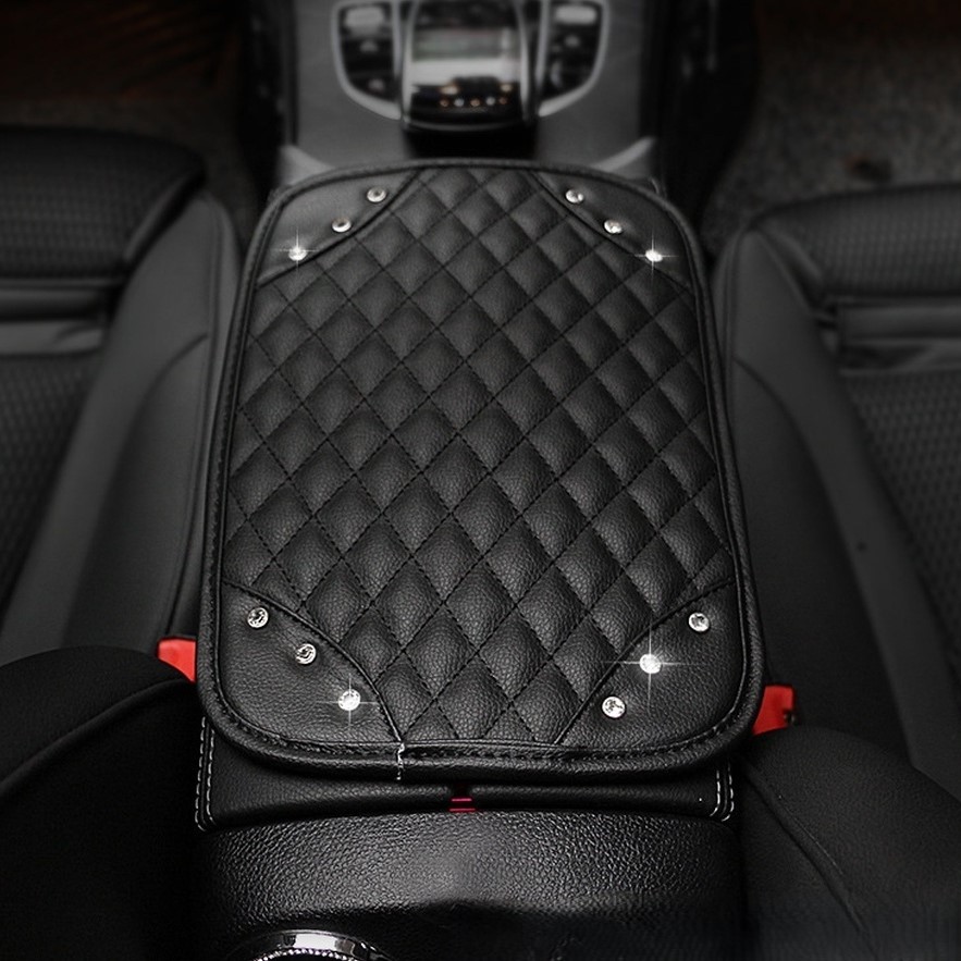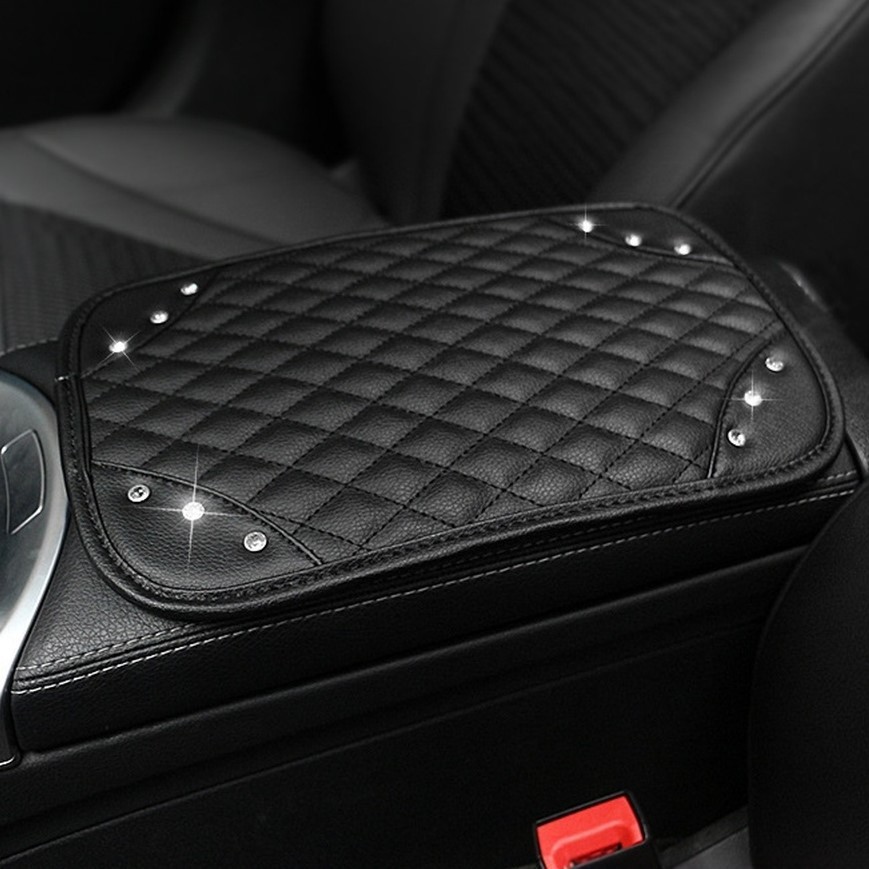 Coussin d'accoudoir de voiture en cuir PU souple avec strass CRISTAL pour la plu