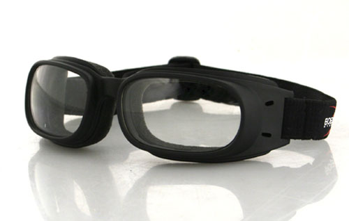 Frame Size: Small/Medium Flexible Rubber Frame Neoprene and Open Cell Foam Microfiber Pouch Available in smoked, amber, and clear lens