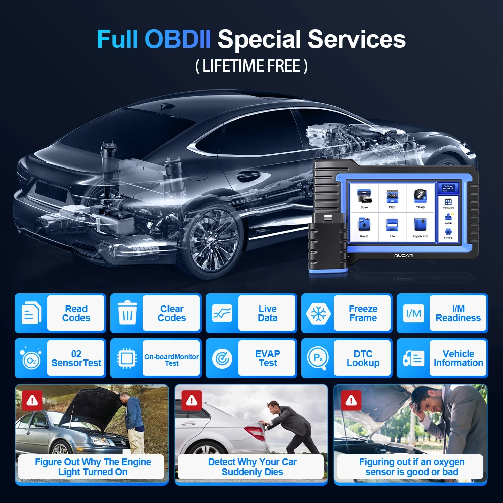 MUCAR VO7 OBD2 Scanner-Diagnose-Tool bietet umfassende 28 Wartung Reset-Services für LEBENSLANG KOSTENLOS.
