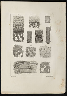 Anatomical board of the year 1864, drawn and lithographed by Léveillé. It represents the evolution of the ossification of the sternum from a child to adulthood. And the ribs and clavicles of an embryo.. Very nice appearance and very decorative. Many emotions emerge, in connection with the history of medicine. Ideal for a doctor, doctor, orthopedist, surgeon, historian or collector. Authentic lithography of 1864 with some marks of time.