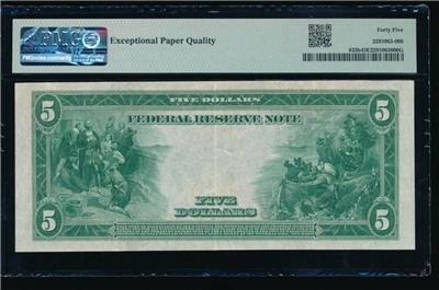 Here we have a $5 1914 red seal Federal Reserve Note from the New York district. It has the signatures of Burke and McAdoo like all the red seals. It is the 'b' variety. The red serial numbers are very bright and the seal has plenty of color as well. It would fit in perfectly to a district set or advanced Freidberg collection, but those sets are pretty darn tough to put together! This note is graded by PMG as Extremely Fine 45EPQ. You don't have to take my word for the grade of the note, you just have to trust PMG.