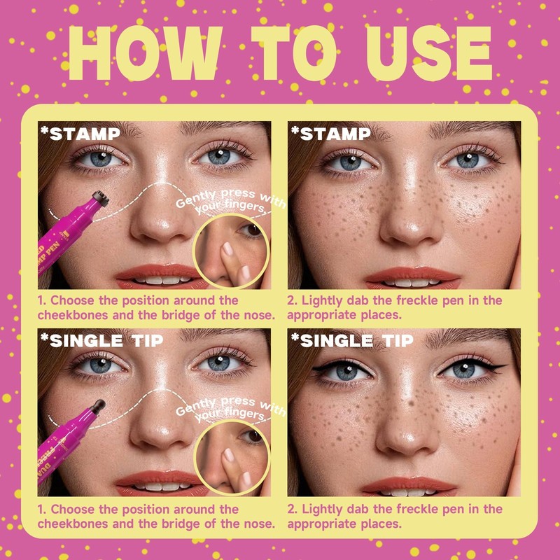 The 2-in-1 single-tip design offers convenience, allowing you to create different styles of faux freckles with just one tool, keeping up with the minimalist makeup trend.