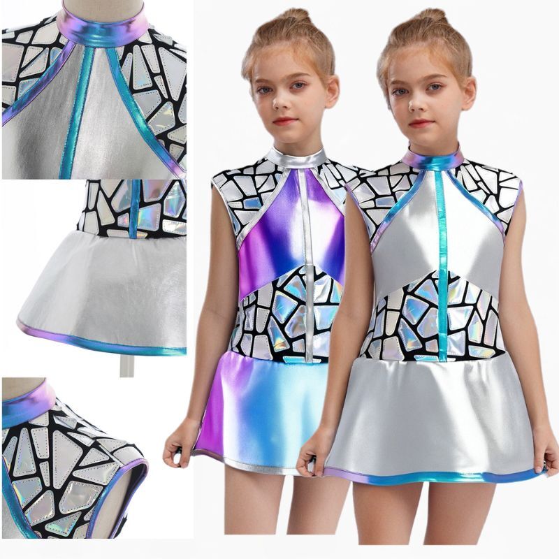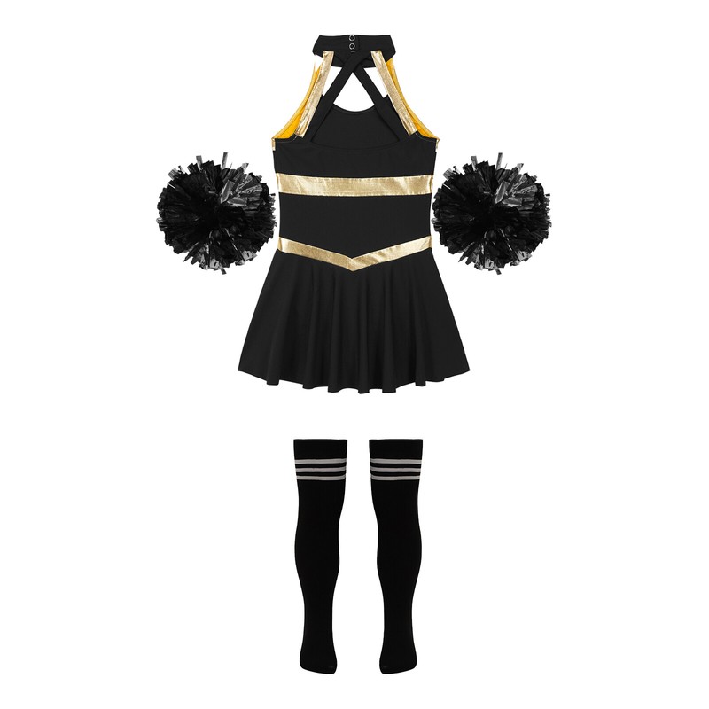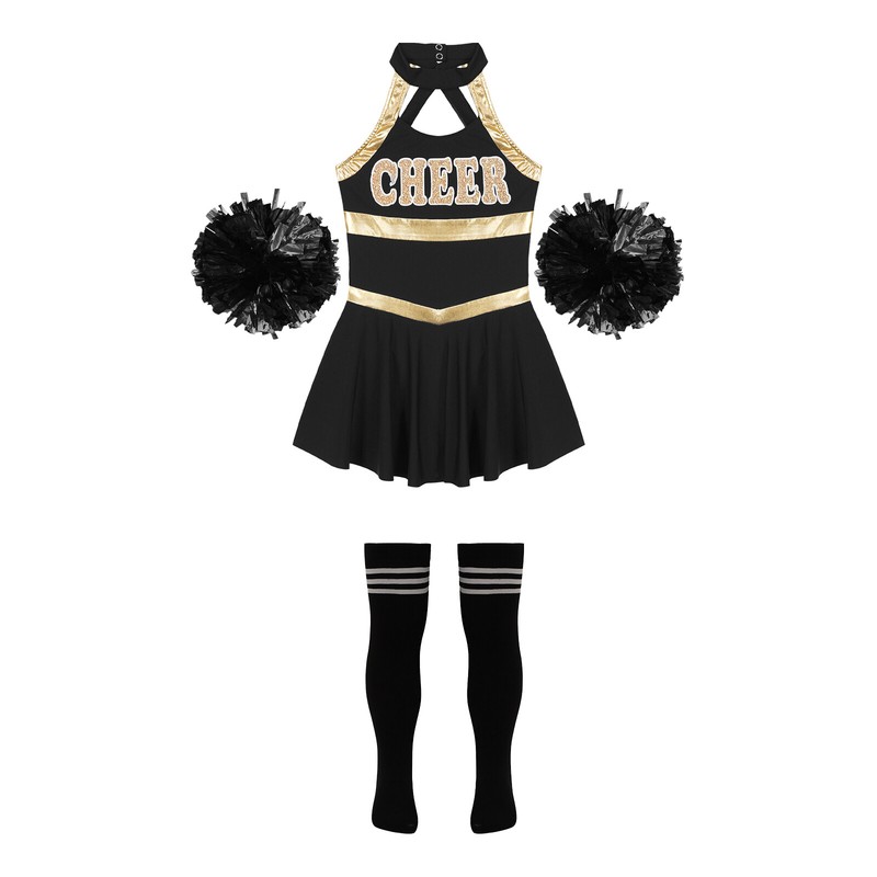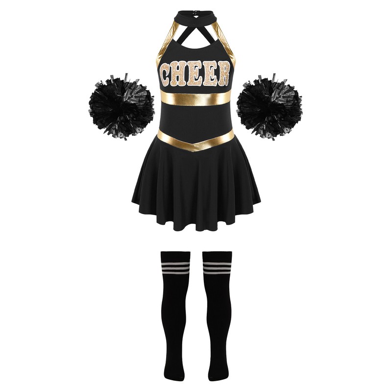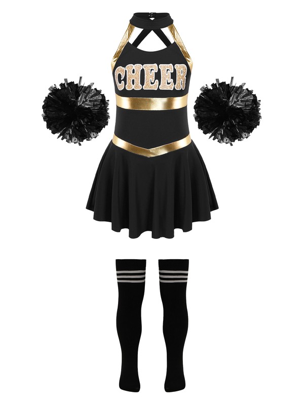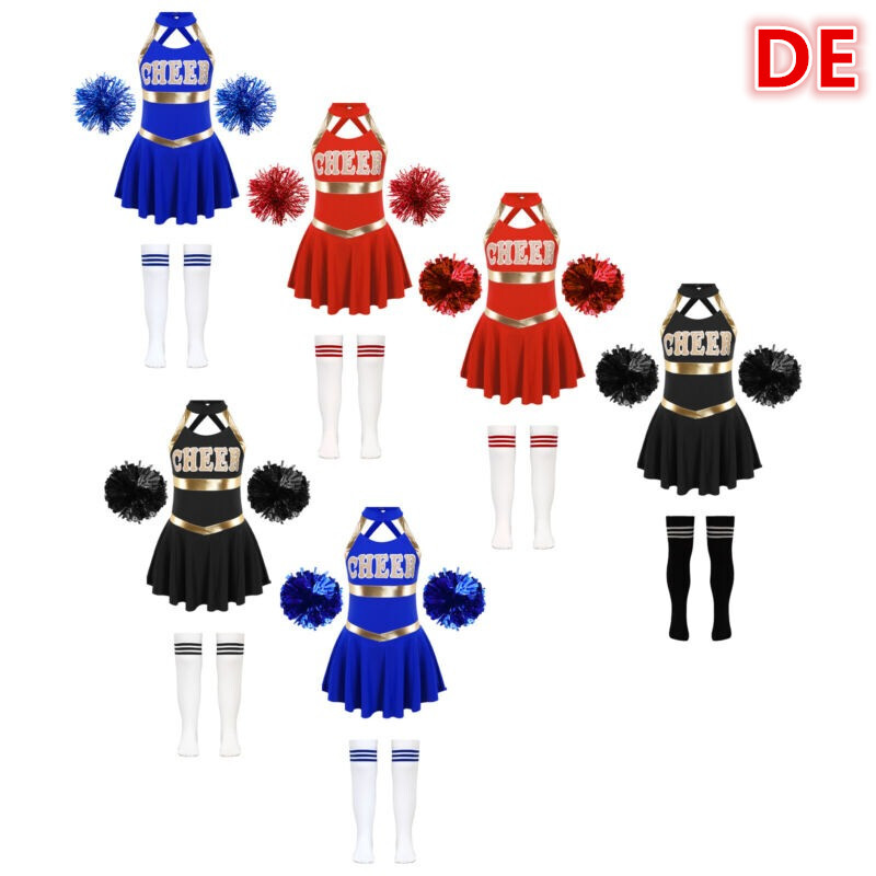 DE Cheerleaderkostüm Mädchen Cheerleadingtanzkleid teiliges Set Ärmelloses Kleid