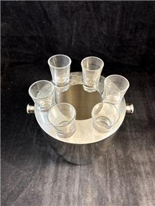 This group of items has been previously owned and is in good condition with little or no signs of use or wear, some minor residue from storage. The vodka glasses are roughly all the same height, but some differ by about 1/8" or a quarter of an inch as shown and fit slightly higher in the chiller. Also of note, the glasses are not marked with the Waterford stamp, but are part of this set.