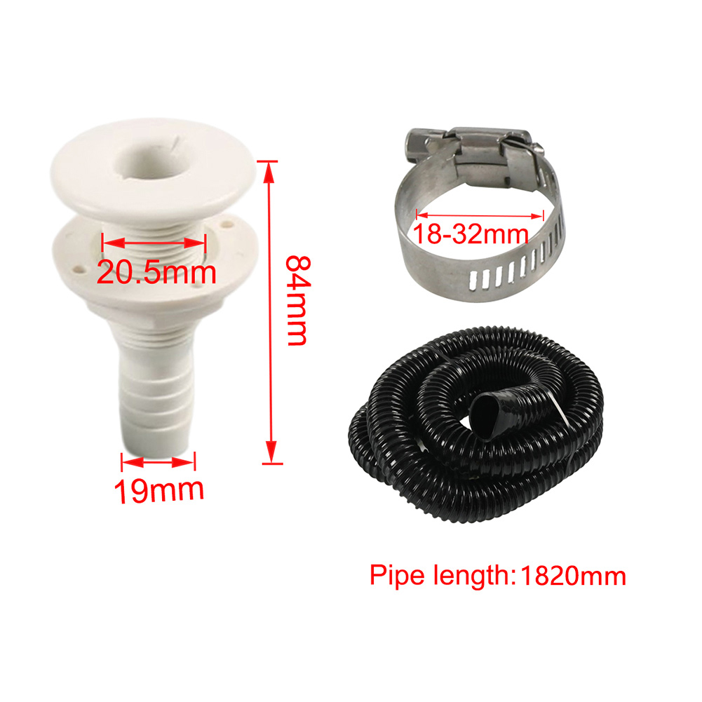 3/4 Inch Bilge Pump Installation Kit With 6FT Hose For Boats Marine Yacht Features: 1. The 3/4 inch outlet diameter ensures a smooth and efficient water flow, preventing clogs and obstructions. 2. Equipped with pipe clamps, which prevent water leakage, and ensure that the pipe connection is stable and not easily broken. 3. This kit contains all the essential parts and equipment needed to perform pumping tasks, making it a good choice for marine accessories and easy to use. 4. The pump hoses are made of quality PVC material, soft and flexible, bringing convenience, and the clamps are made of metal, sturdy and reliable to serve you for a long time. 5. Our bilge pump hose is designed with corrugated spiral outer appearance, with anti kink structure and small bending radius, can keep a stable flow rate and ensure a long service life, at the same time, the connect end adopts cuff-less design with smooth inner hole, avoiding leakage. Specification: Condition: 100% Brand New Material: ABS, PVC, Stainless Steel Color: Black Fitment Type: Performance/Custom Outlet Diameter: 3/4 inch Corrugated Hose Length: 6 ft (182cm) Fitment: Fits for all bilge pumps with a 3/4" outlet. Can be applied in assorted occasions, such as small swimming pools, sewage sampling, cistern replenishment, liquid transfer, fountains and more, ideal for industries including fish farming, environmental protection, ships, industry and agriculture, etc. Not for use with below waterline thru-hull connections. This product needs to be used with bilge pump, please confirm the size of your bilge pump outlet before purchase to avoid purchase mistakes. Packing Included: 1 x Hose 1 x Thru Hull Drain Plug 2 x Clamps Notes: 1. All dimensions are measured by hand, there may be small deviations. 2. No installation instruction included, professional installation is highly recommended. 3. The real color of the item may be slightly different from the pictures shown on website caused by many factors such as brightness of your monitor and light brightness.