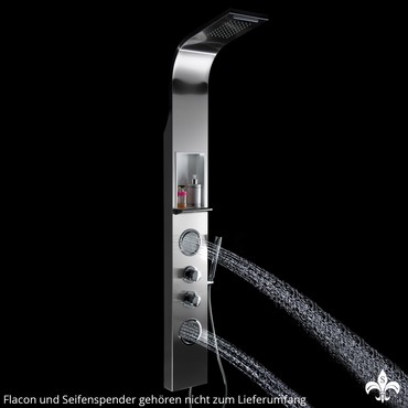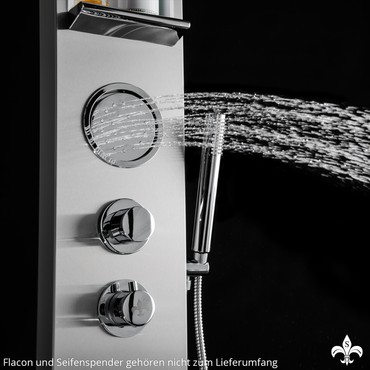 Eine schöne Art zu relaxen und sich zu erfrischen. Das innovative Design ist ein Highlight für jedes Bad. Hinter der metallischen Oberfläche (gebürsteter V304 Edelstahl mit Antifingerprint Beschichtung), verbirgt sich intelligente Technik. Neben den großflächigen Körperdüsen und der großen Regendusche, sorgt der üppig breite Wasserfall für sanfte bis kräftige Strahlen, die Sie mit Wasser verwöhnen.