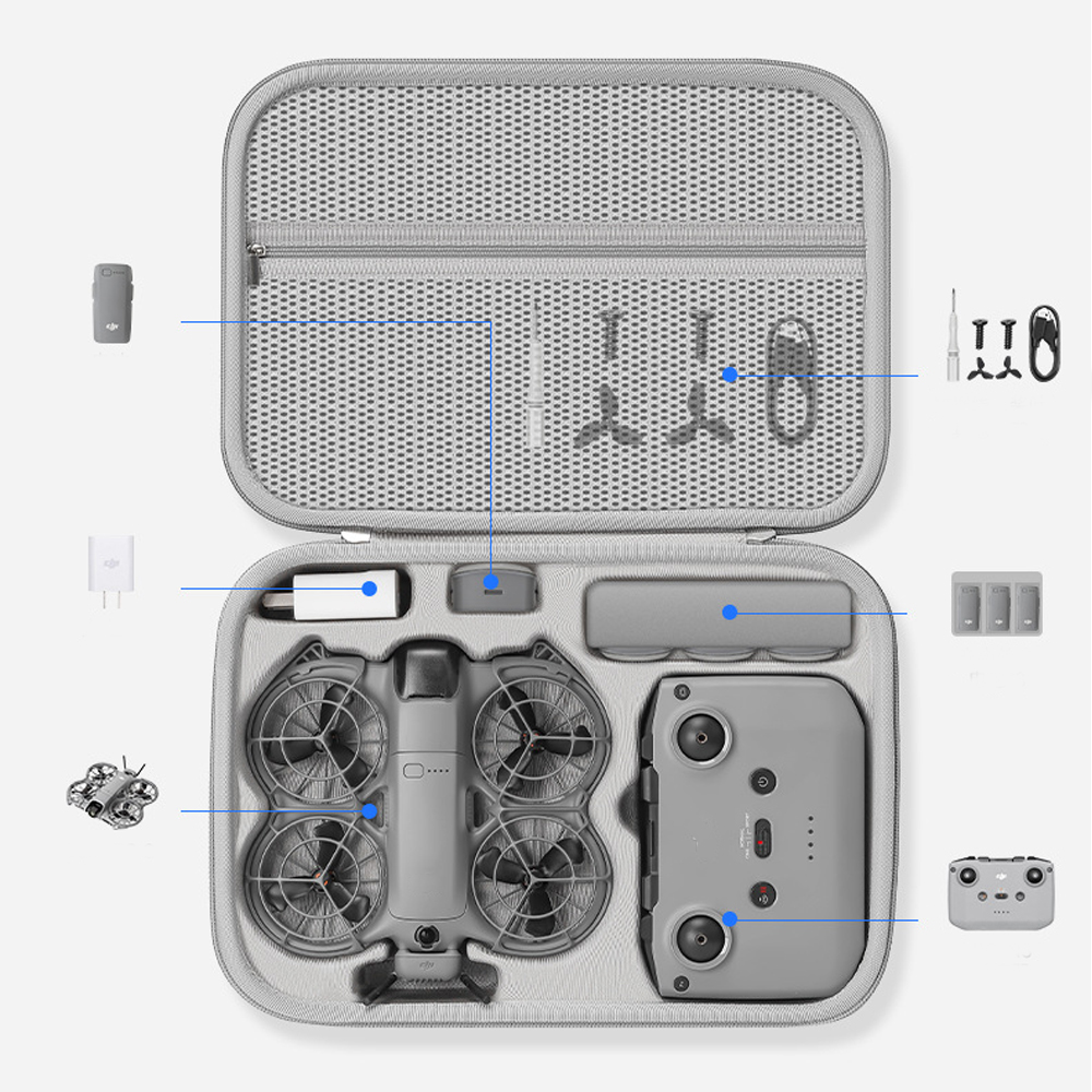 The carrying hard case is designed for DJI Neo2 drone and accessories