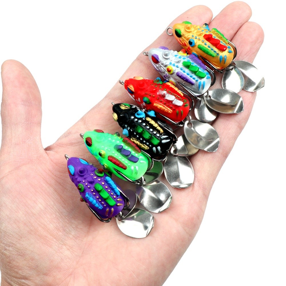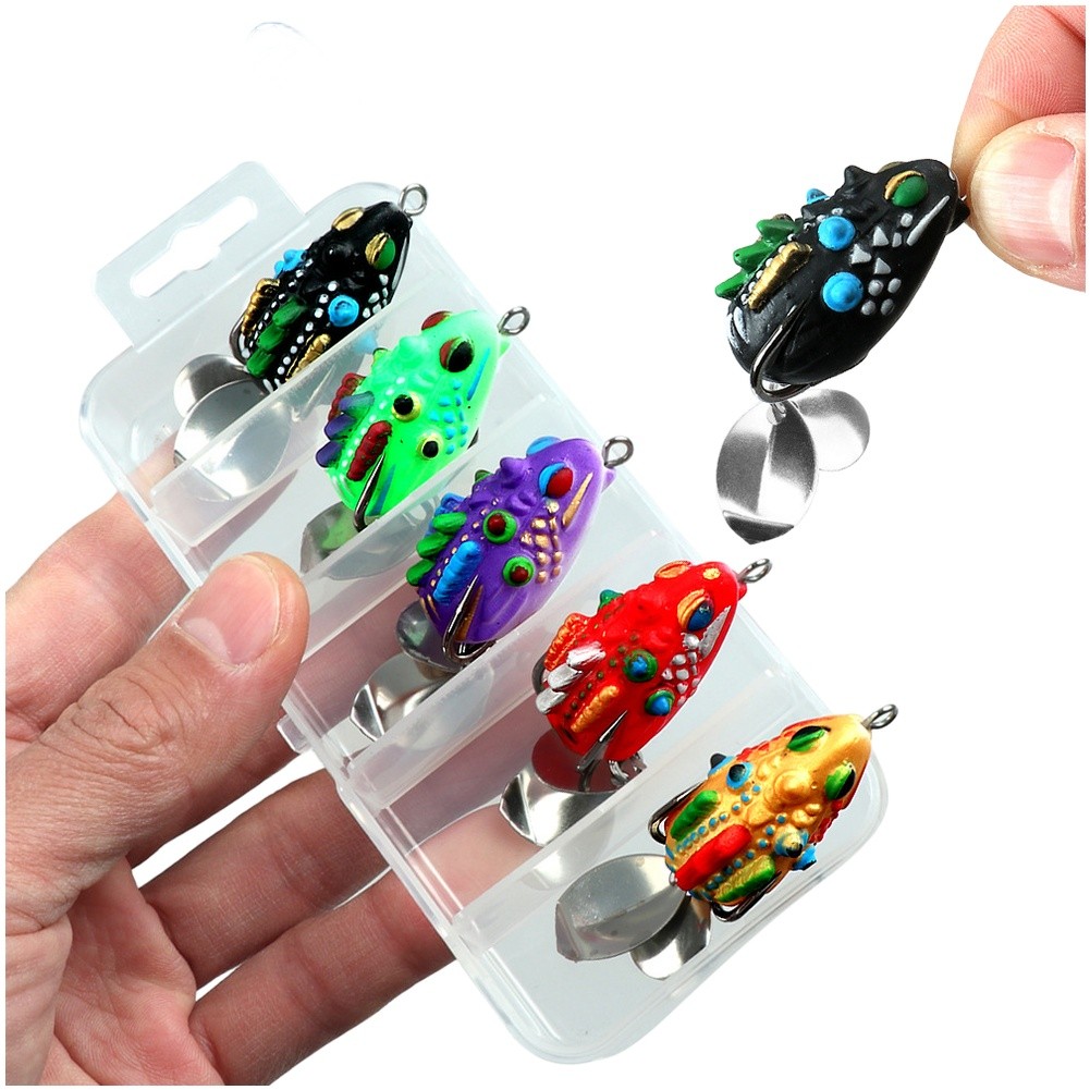 *5-piece set of compact soft frog baits: Each is 3.5 cm (1.38 in) long and weighs 5.4 g (0.19 oz). These miniature surfacing baits are suitable for surfacing hatching and can effectively trigger bites even in areas with high water pressure.