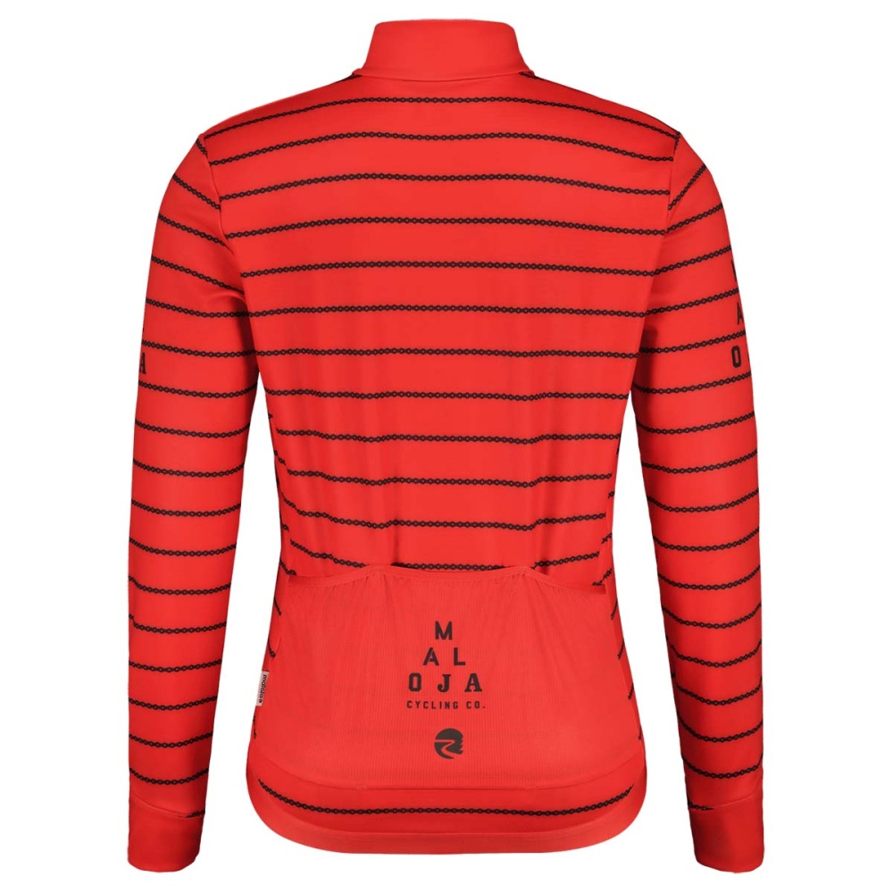 Gemeinsam mit den Athleten von Malojas Straßenrad-Teams Pushbikers wurde die sycle jacket aus warmem, schnell trocknendem, elastischem Thermopile-Material entwickelt. Der Schnitt wurde etwas lockerer gestaltet. Sie eignet sich hervorragend als wärmende Zwischenschicht auf dem Fahrrad oder E-Bike. Die Jacke verfügt über drei Rückentaschen und reflektierende Details, die die Sichtbarkeit in der Dämmerung verbessern.