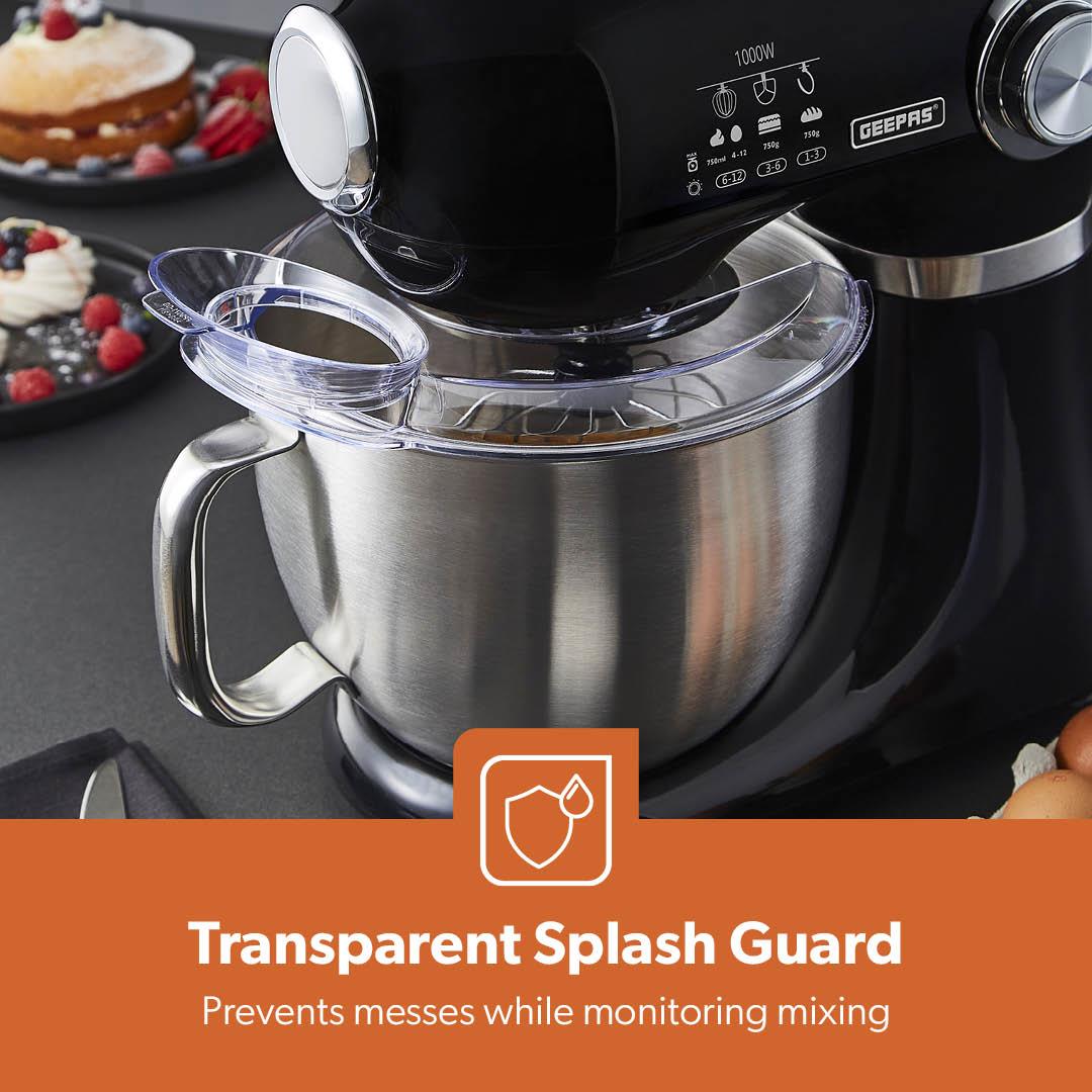 ✅ SPLASH GUARD WITH INGREDIENT CHUTE – MESS-FREE MIXING - The transparent splash guard prevents spills while allowing you to add ingredients easily, keeping your kitchen clean and organized.