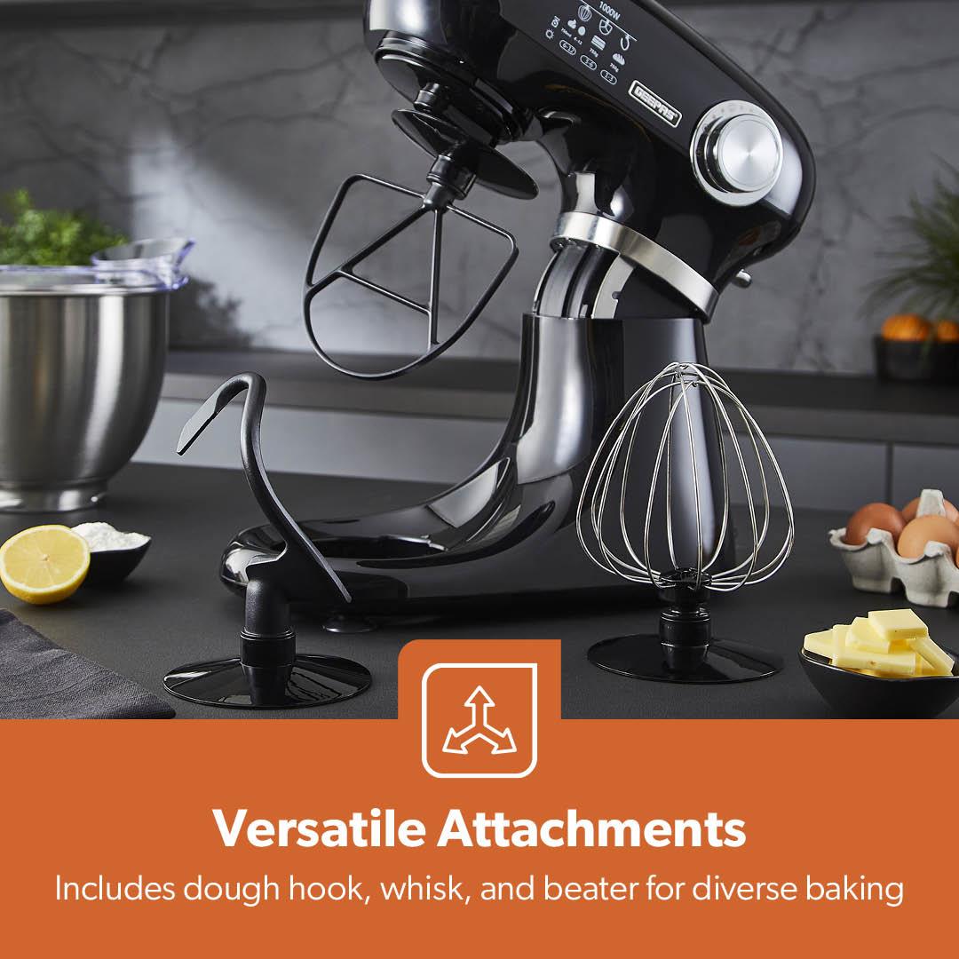 ✅ TILT-HEAD DESIGN FOR EASY ACCESS & QUICK ATTACHMENT CHANGES - The convenient tilt-head mechanism makes it simple to switch attachments and remove the mixing bowl without hassle.