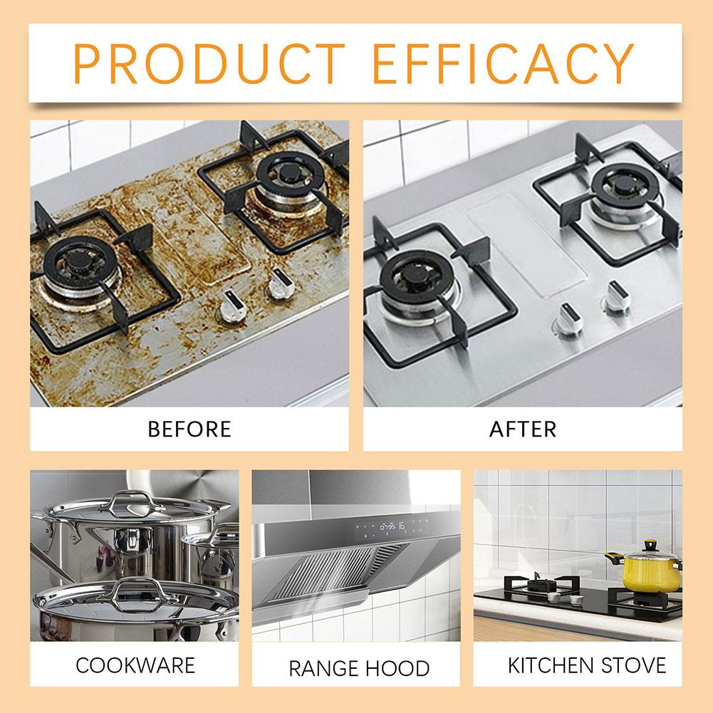 Non damaging surface: The cleaning agent is specially formulated and does not contain harmful chemicals, which will not cause damage to the surface of the range hood and protect it from corrosion and scratches.