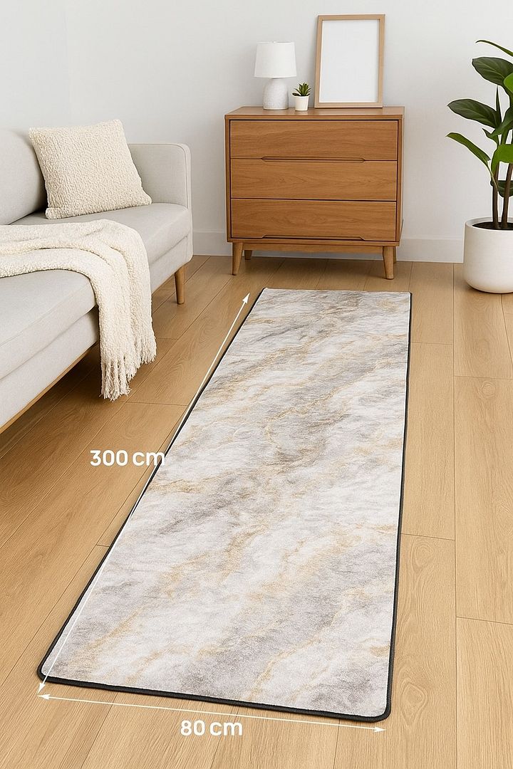 Dieser marmorierte Designteppich im Format 60 x 220 in 7 Farben ist eine moderne Ergänzung für jedes Wohn- oder Schlafzimmer. Die mittelgroße Stapelhöhe und die maschinellgewebte Konstruktion machen es für hochverkehrsbereitete Bereiche geeignet, während die umweltfreundlichen und leicht zu kräftigen Funktionen für Ihre Wohnkultur ein Komfort verleihen. Fügen Sie Ihrem Raum mit diesem eleganten und vielseitigen Teppich aus klassischer Bettwäsche einen Hauch von Stil hinzu.