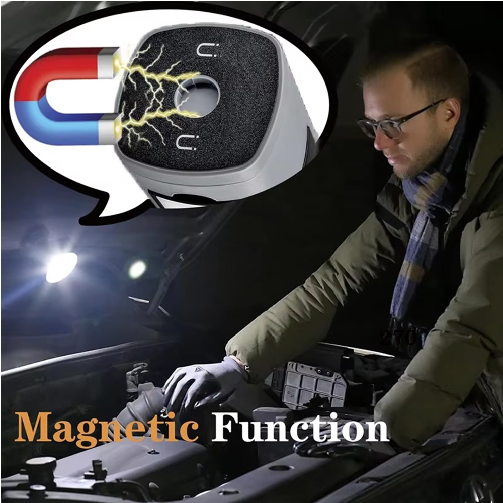 * Versatile Usage: This rechargeable work light features a hook and an integrated magnet at its base. Versatile application: It can serve as a magnetic torch, be suspended for illumination,