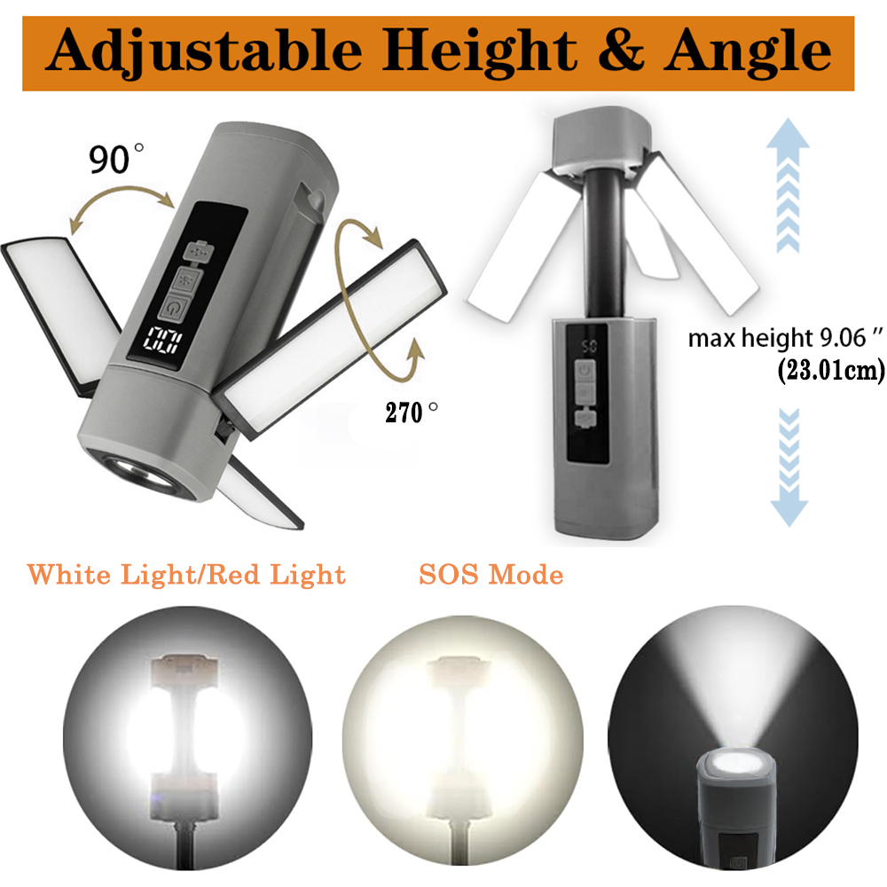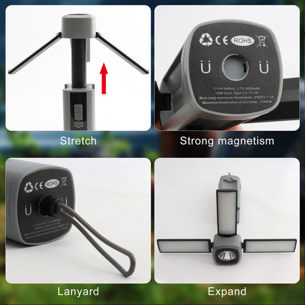 Features:Multiple light sources on three sides,foldable,can be hanging,the lamp body can be extended,with tail magnet