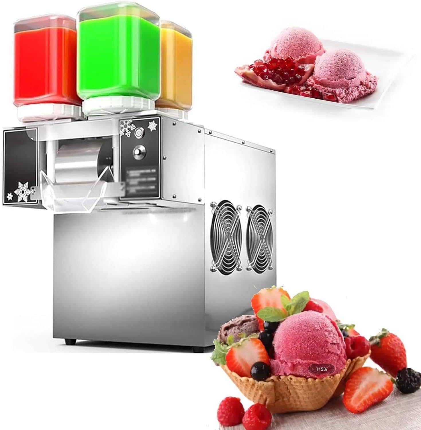 -With 4 detachable water barrels, can put into different flavors of snow ice material, can make several flavors per time.(manual change barrel)