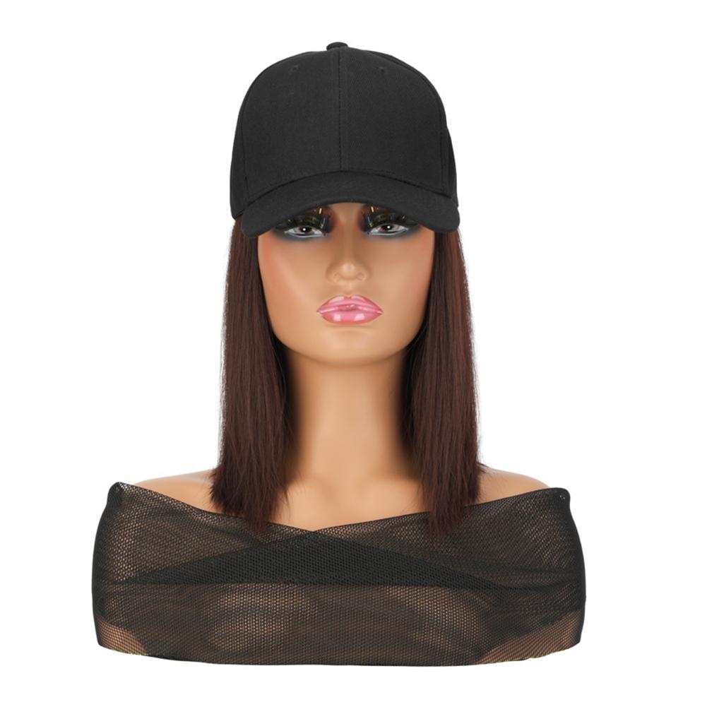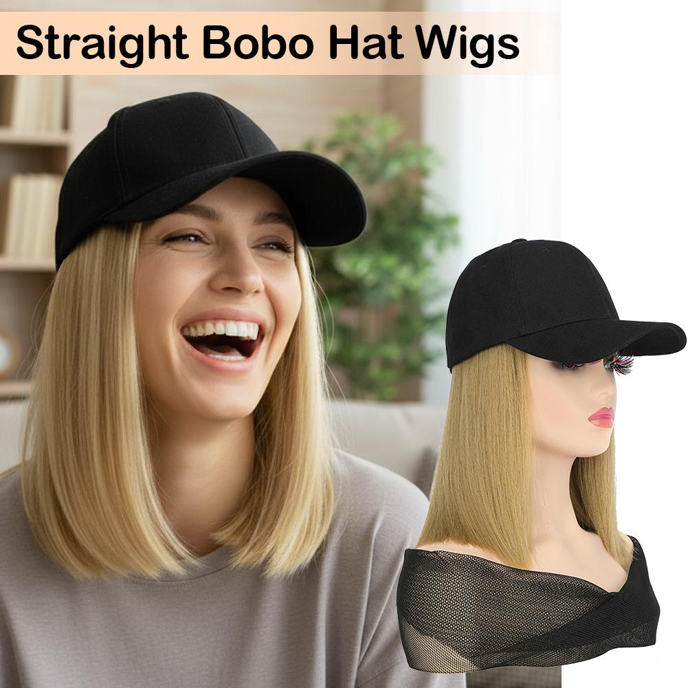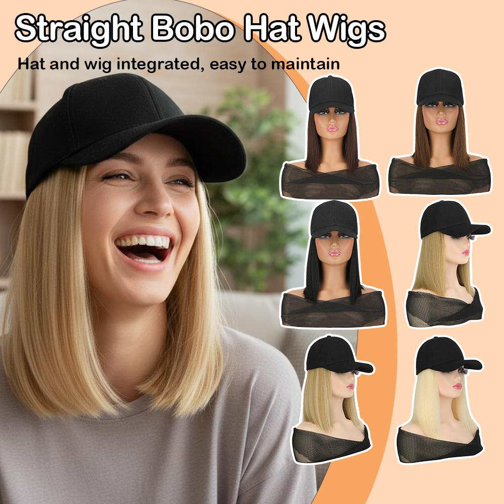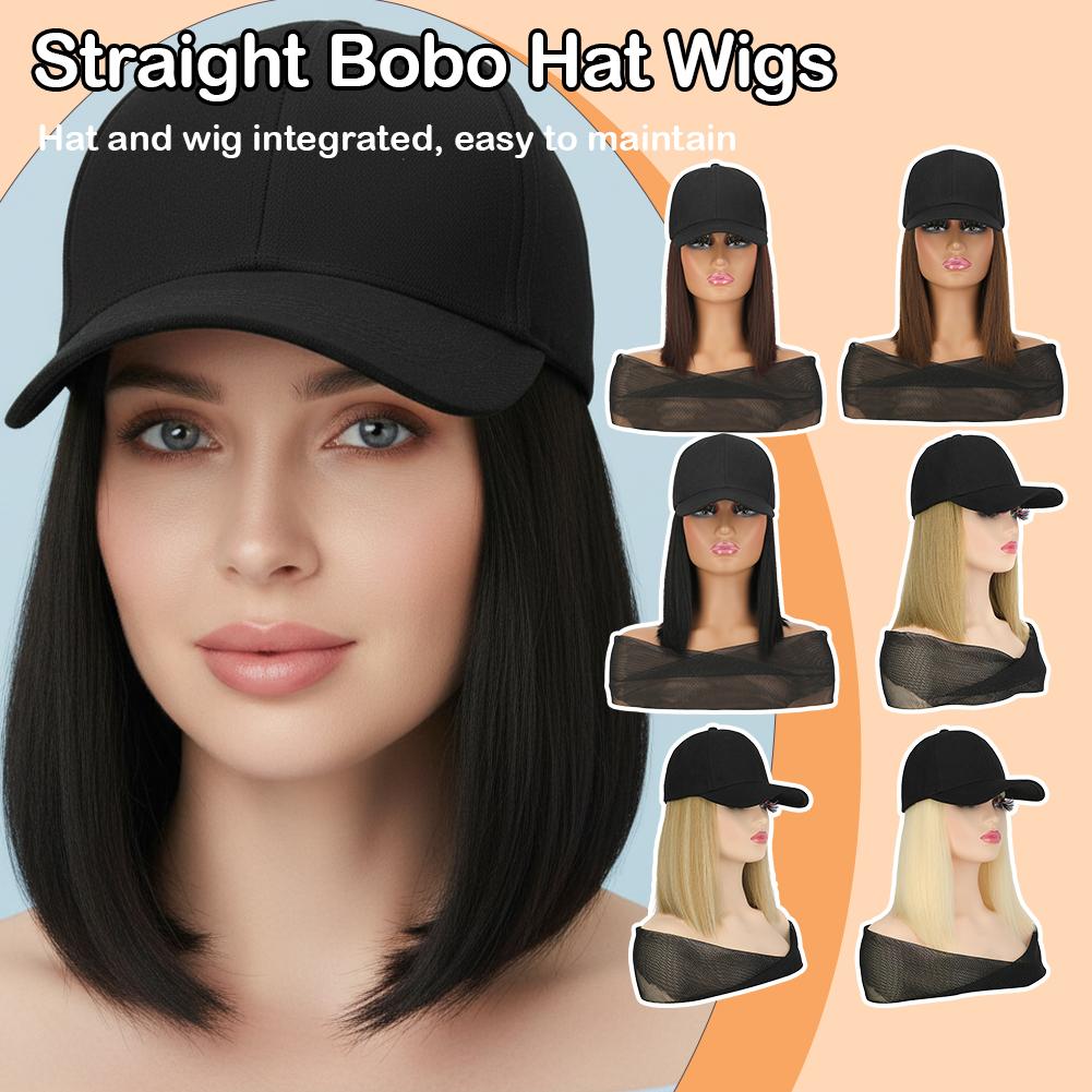 1. Synthetic fiber wig cap with short straight bob cut. Features a neat, classic hairstyle. Easy to maintain and style for daily wear.