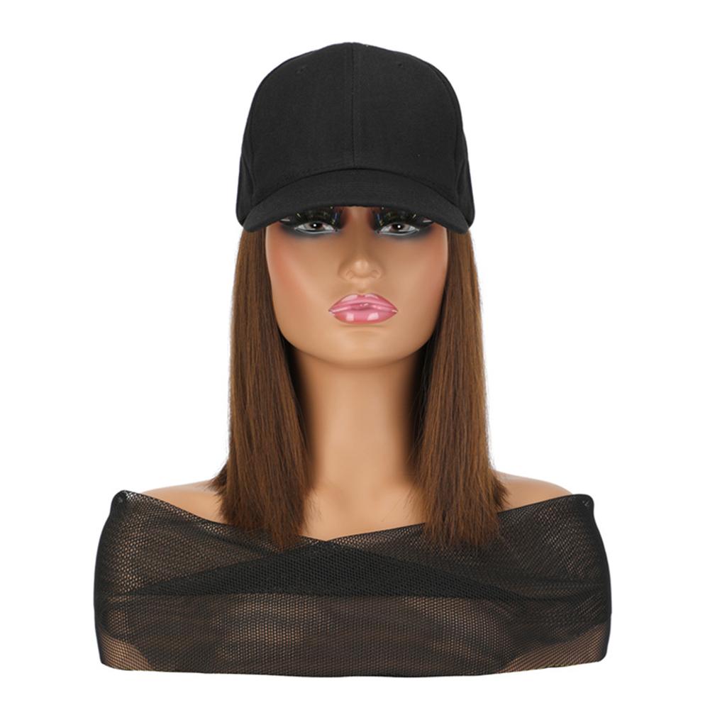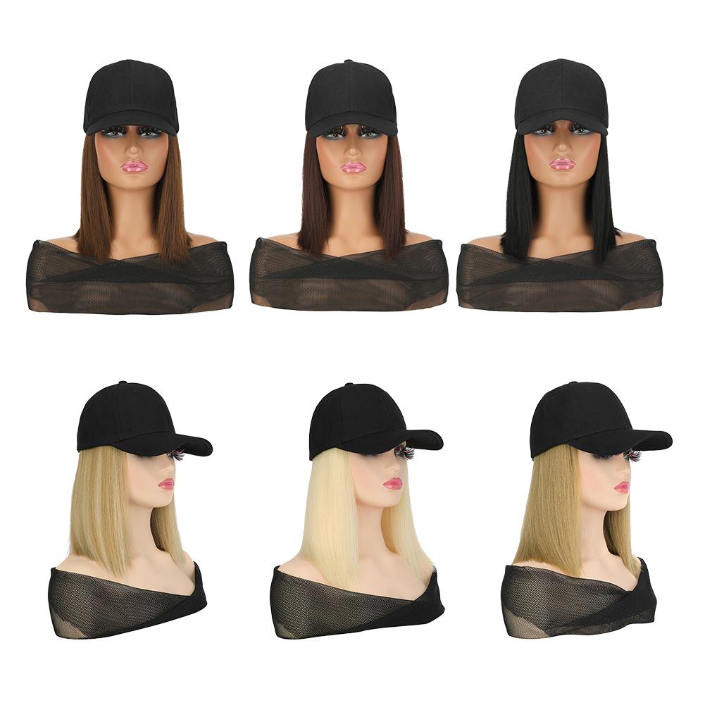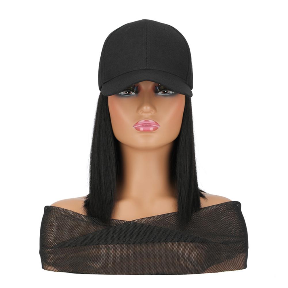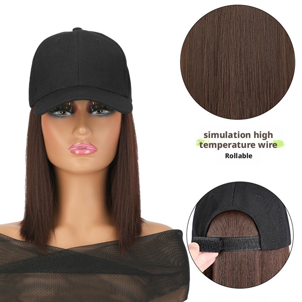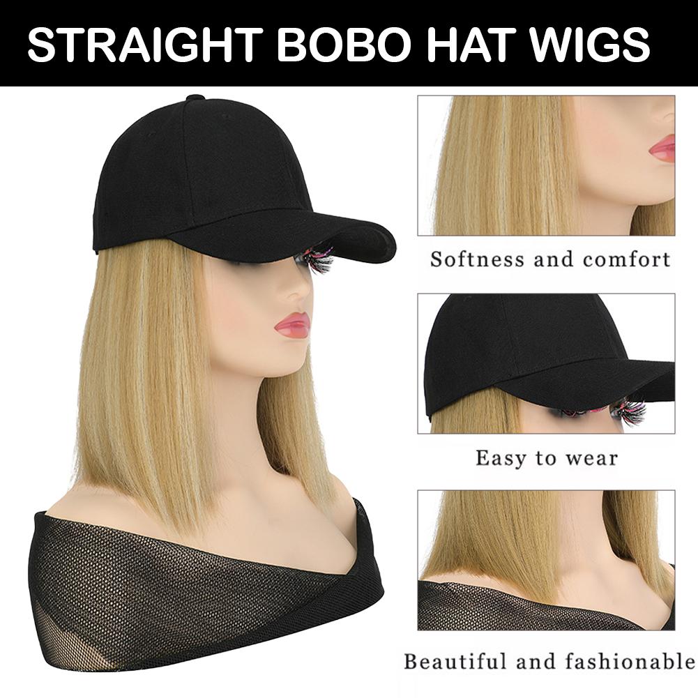 1. Synthetic fiber wig cap with short straight bob cut. Features a neat, classic hairstyle. Easy to maintain and style for daily wear.