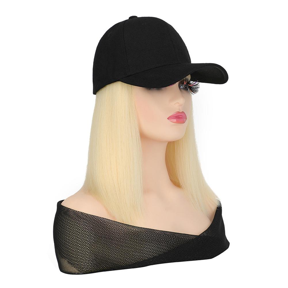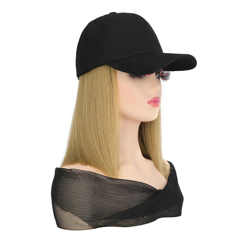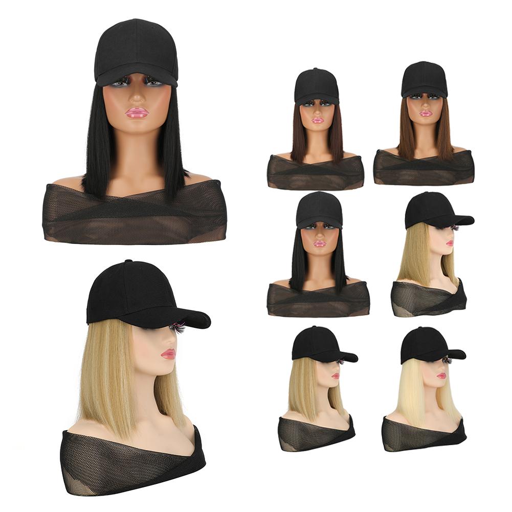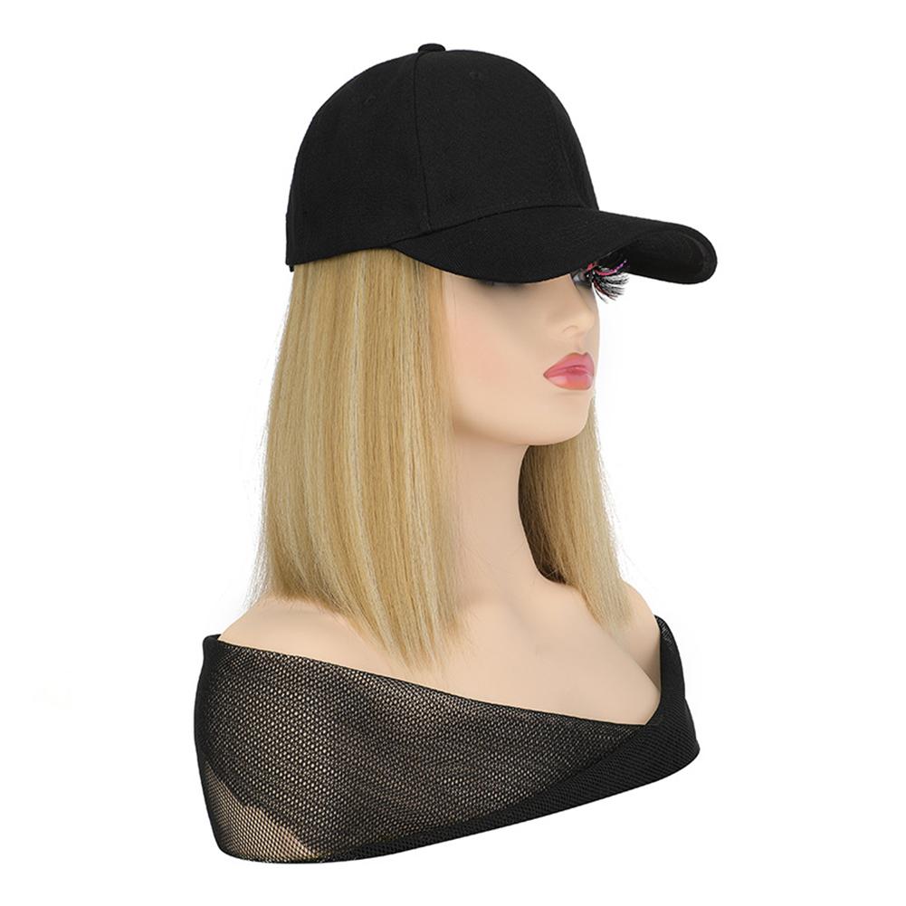 1. Synthetic fiber wig cap with short straight bob cut. Features a neat, classic hairstyle. Easy to maintain and style for daily wear.