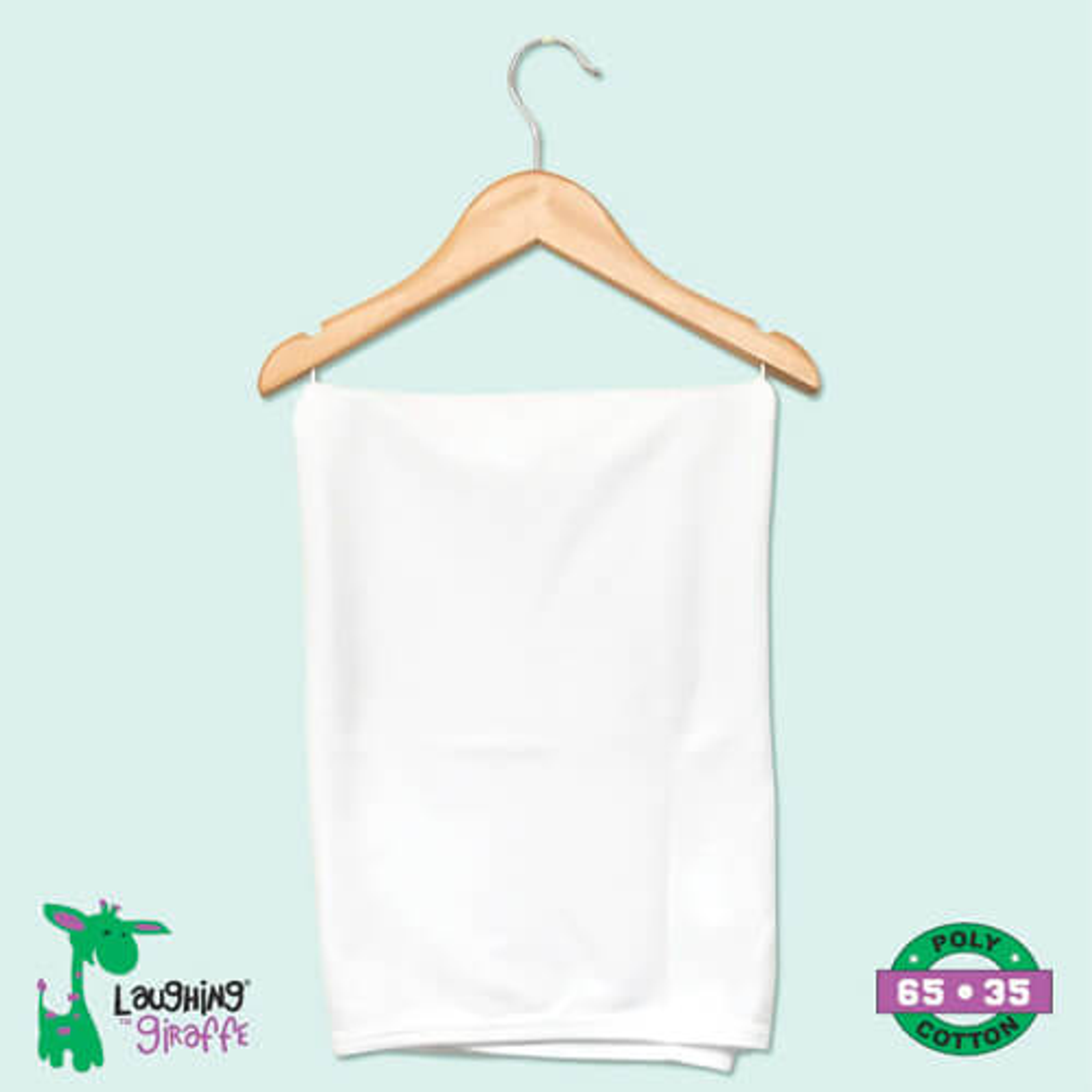 Length: 5 Width: 5 Height: 2 Swaddle your precious little one in a soft and breathable receiving blanket. The Laughing Giraffe has created a blanket to provide warmth or double as a play area for babies. These adorable blankets are made from 100% polyester fabric providing a super-soft blanket any baby will love. It 5.4 oz Interlock Knit provides decorators with a stable surface for sublimation, screen printing, HTV & DTG.