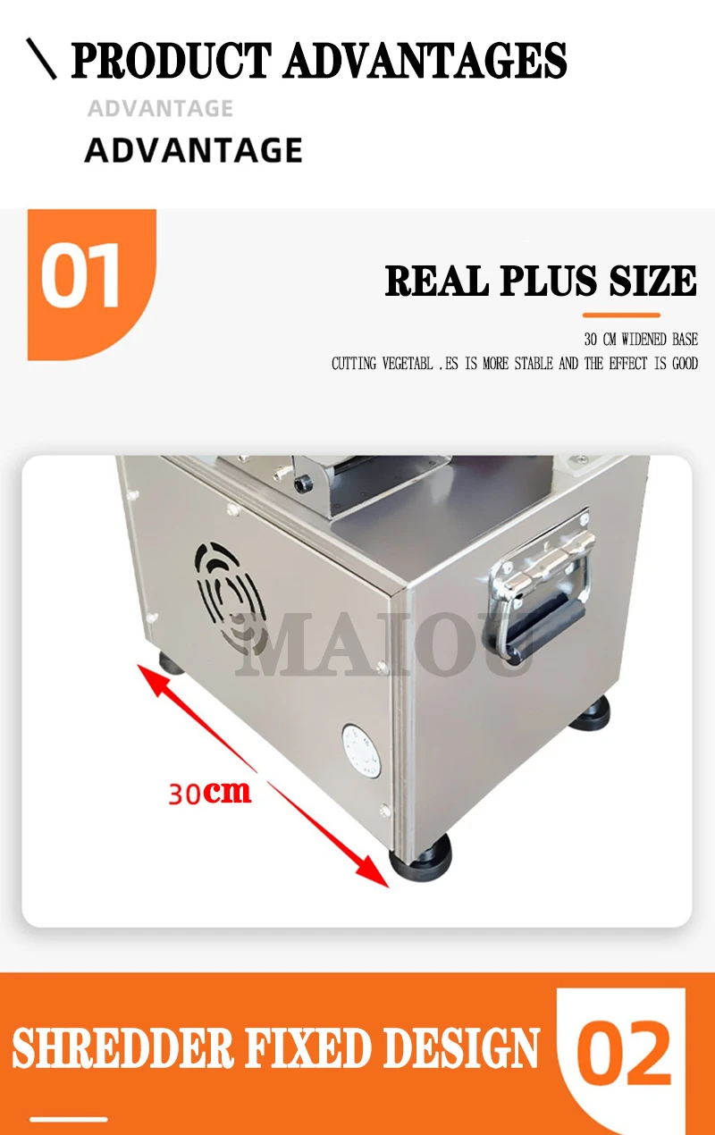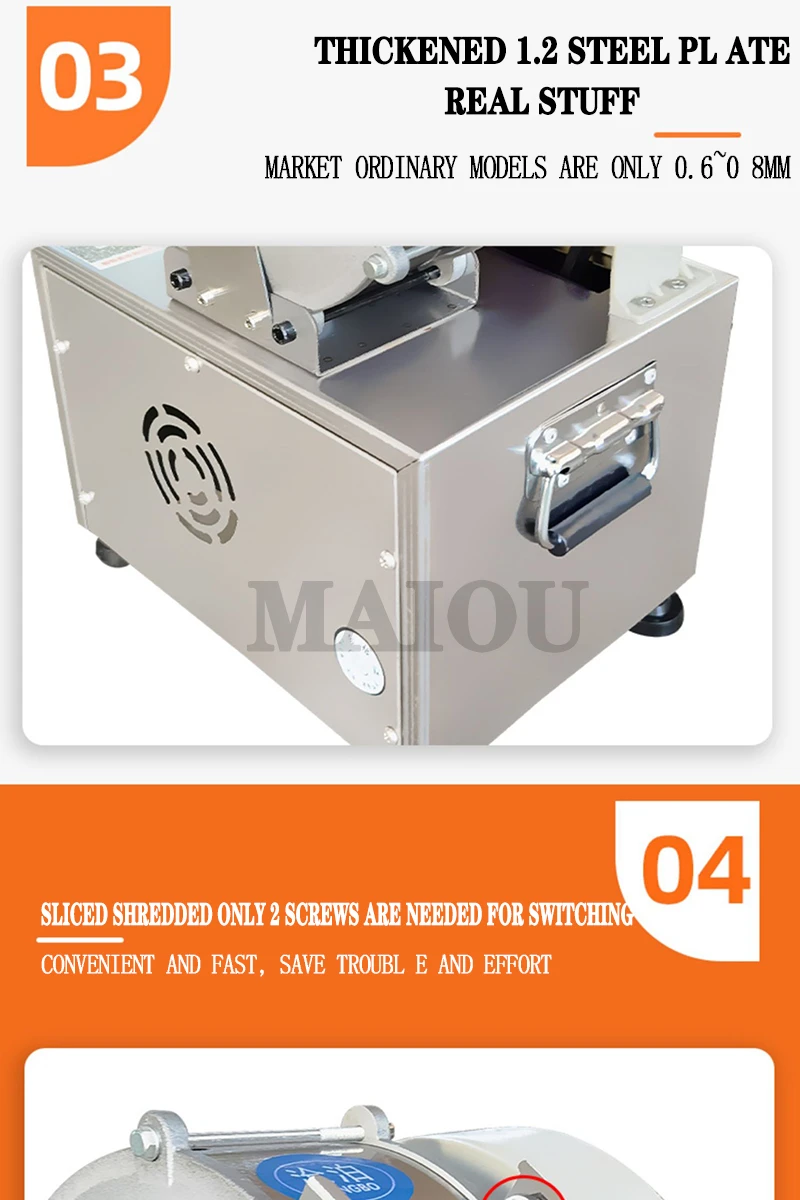 5.This series of cutting machine is widely used to cut fruits and vegetables into slices and filaments. Such as radish, carrot, potato, pineapple, yam head, sweet potato, melon, onion, green pepper, mango, pineapple, apple, ham, papaya, etc.