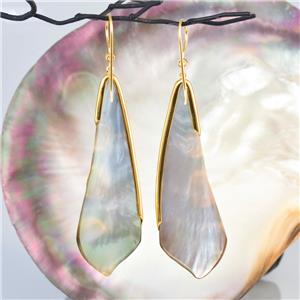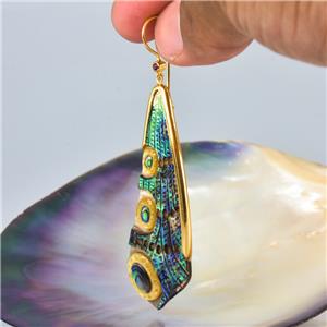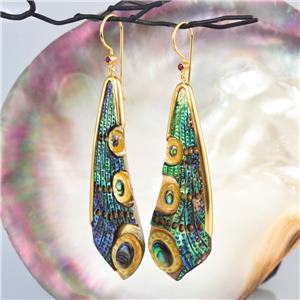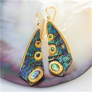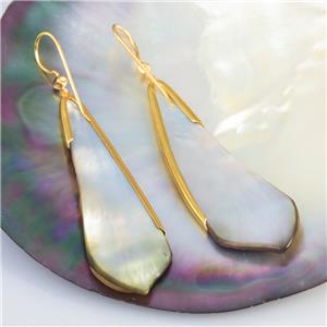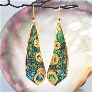 Multicolor natural shell DRAGONFLY WINGS design carving with 18K Gold Vermeil over solid 925 Sterling Silver hook earrings.