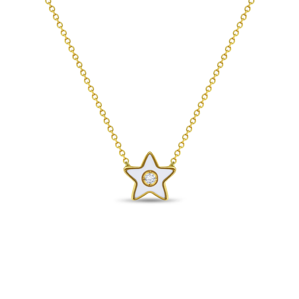 Bright and full of charm, this necklace is a dreamy accessory for preteen and teen girls. Crafted in 14k yellow gold, it features a white enamel star charm that shines with celestial inspiration. At the heart of the star, a clear cubic zirconia stone adds a delicate sparkle. The necklace measures 14 inches with a 1.5-inch extension, offering an adjustable fit that's great as she grows. Whether worn alone or layered, it’s a beautiful gift to celebrate her light and individuality. A gift box is included with purchase.