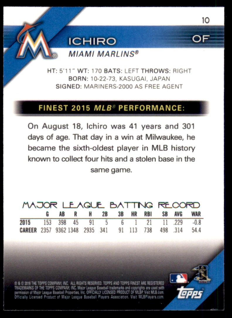 | 2016 Topps Finest Ichiro Miami Marlins #10 | ||||||||||||||||