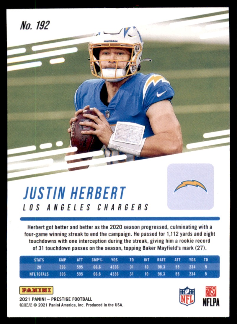 | 2021 Panini Prestige Justin Herbert Los Angeles Chargers #192 | ||||||||||||||||