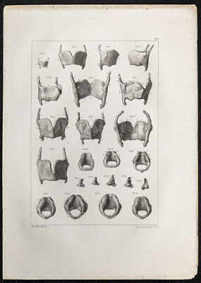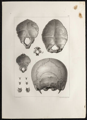 Anatomical board of the year 1864, drawn and lithographed by Léveillé. It represents views of the occipital bone of the skull. Very nice appearance and very decorative. Many emotions emerge, in connection with the history of medicine. Ideal for a doctor, doctor, orthopedist, surgeon, historian or collector. Authentic lithography of 1864 with some marks of time.