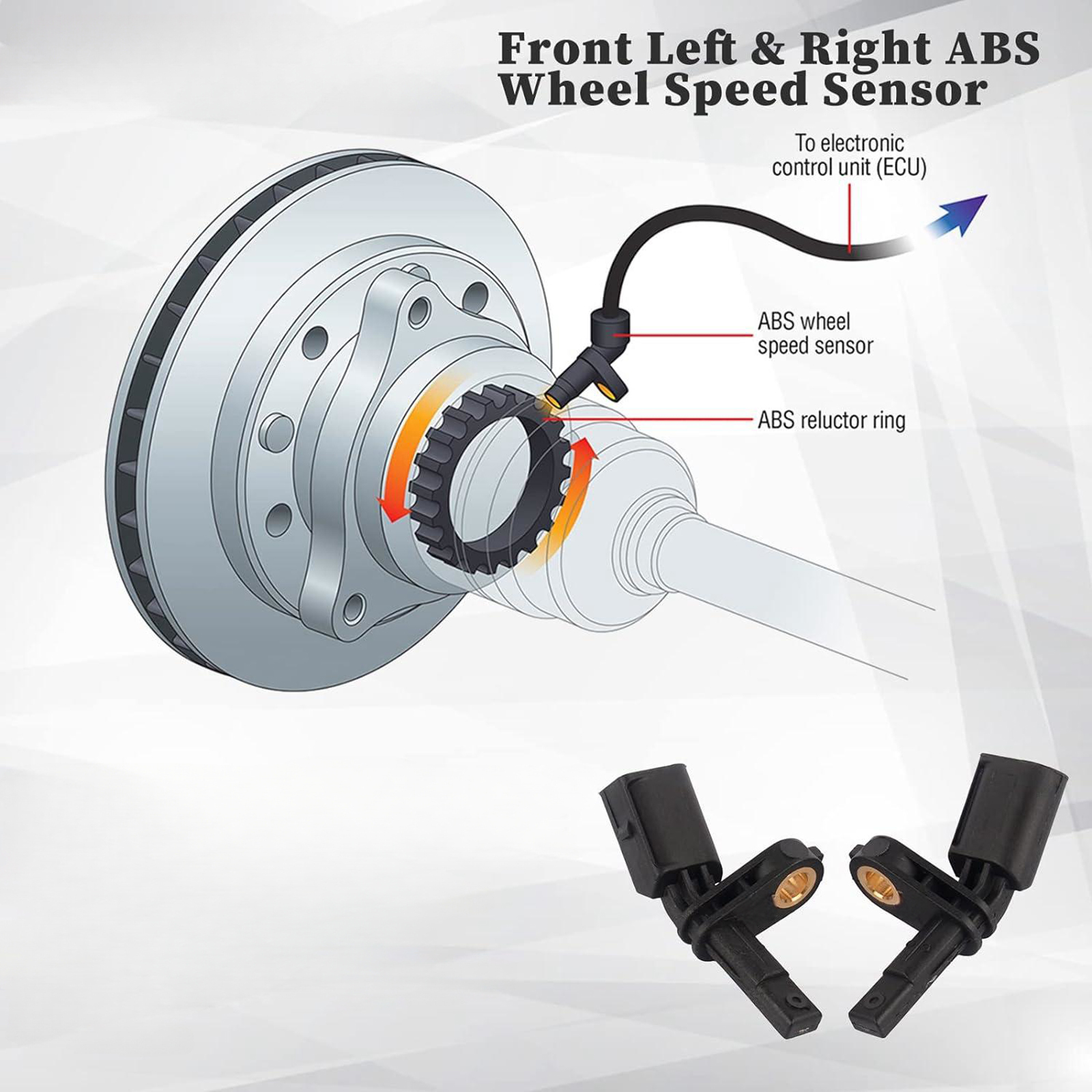 Specifications: Name: Front Left & Right ABS Wheel Speed Sensor Color: Black+Gold QTY: 2Pcs(Left+Right) OE: WHT003856 7H0927804 0986594505