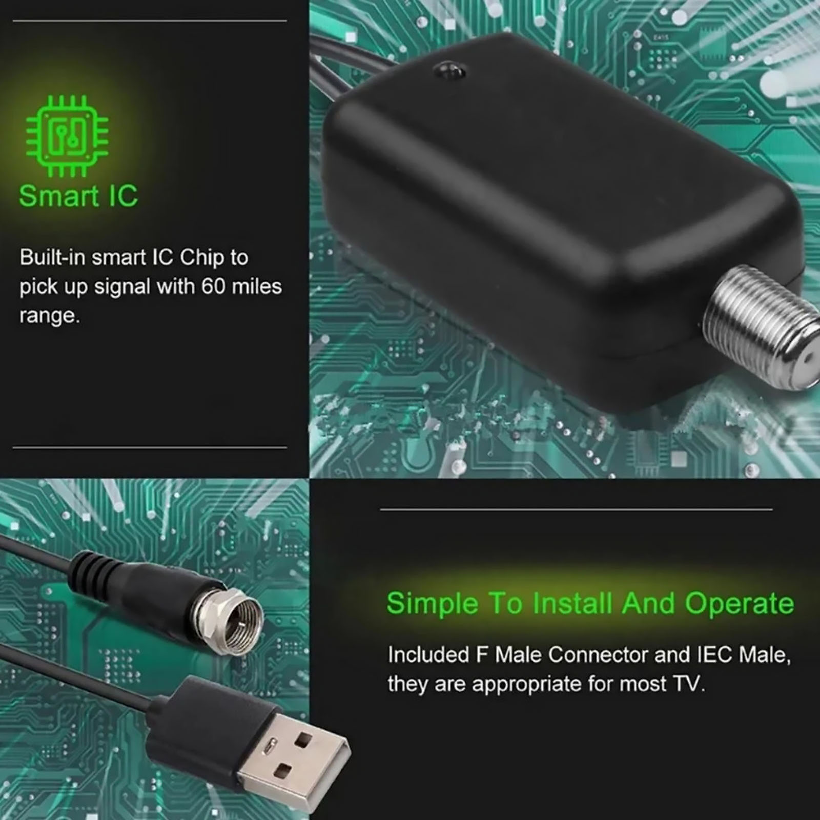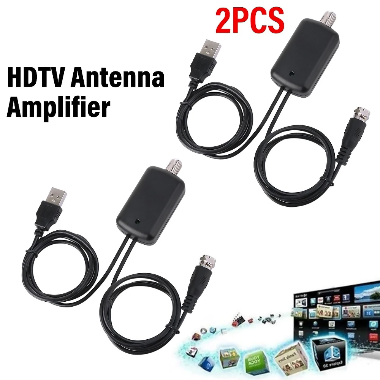 2pcs Durable HDTV Antenna Amplifier Signal Booster TV High Gain Channel Boost