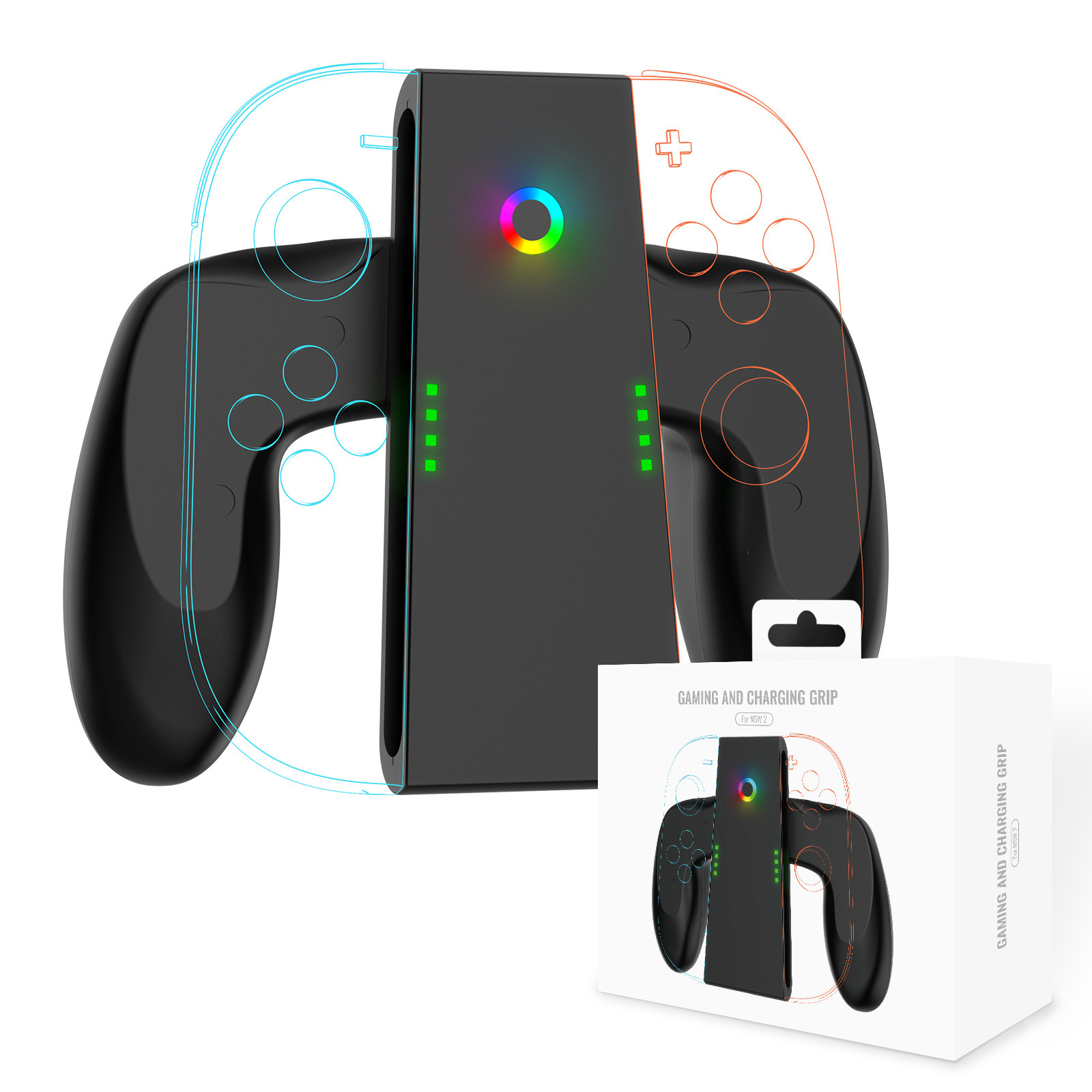 Features: Designed to for Nintendo oy-Con 2 (2025) securely, with charging performance. The charger grip for Nintendo Joy Con 2 features magnetic alignment for easy docking and secure charging. With USB-C power input, for Joy-Con 2 can reach full charge in approximately 2 hours. Spend less time waiting and more time gaming. This charging grip allows for Joy-Con 2 to charge while you're gaming. Enjoy non-stop play with no low-battery anxiety. The grip features a curved, palm-fitting shape that reduces hand fatigue, perfect for long gaming sessions. Stay informed with a built-in LED light system: Orange – Charging; Colorful – Fully Charged; White – Standby. Charging Controller Grip for Joy-Con 2 is made of high-quality ABS material, durable and anti-fall, safe for travel. Whether at home or on the go, this lightweight charging grip fits easily in your bag—perfect for travel, commutes, or everyday use.
