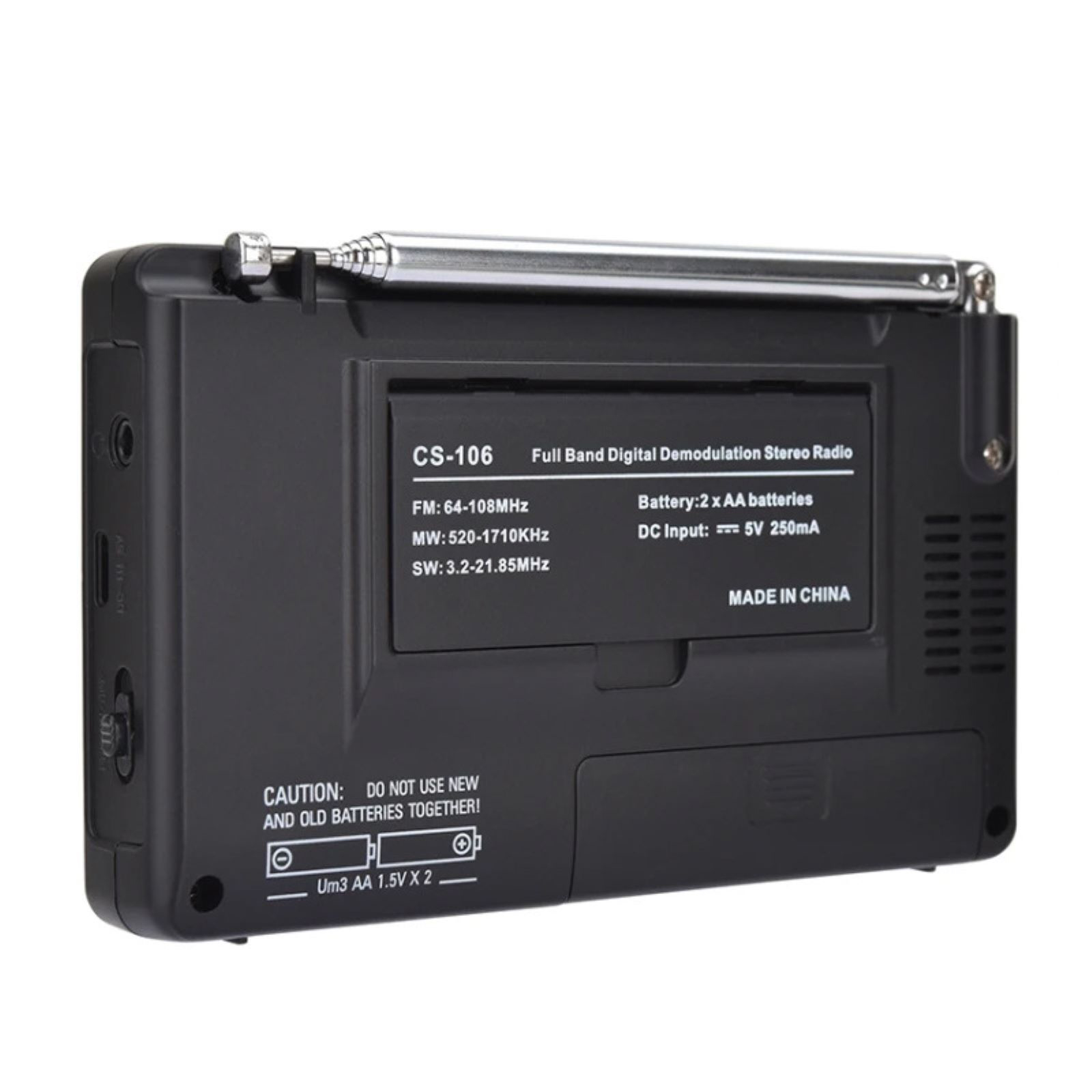 Multiple Functionality: This radio features FM/AM/SW/MW/TV full frequency reception, supports clock and alarm functions, displays low battery and charging symbols, and includes a memory function.