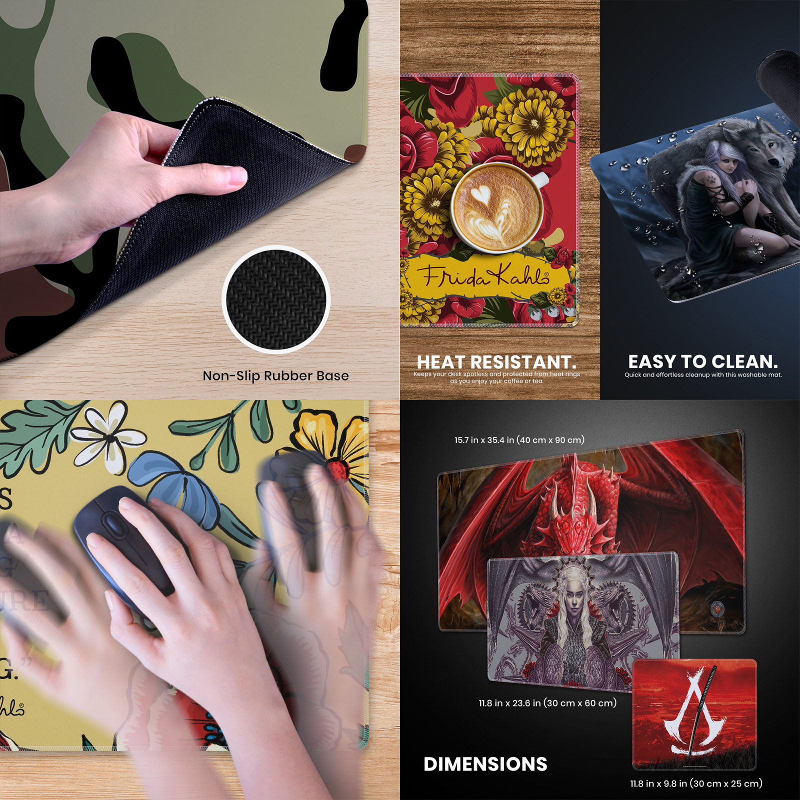 Eye-Catching Designs. For those who appreciate stylish and personalized workspaces, our anti-slip, easy gliding desk pad features a wide selection of designs to match your personality and unique sense of style.