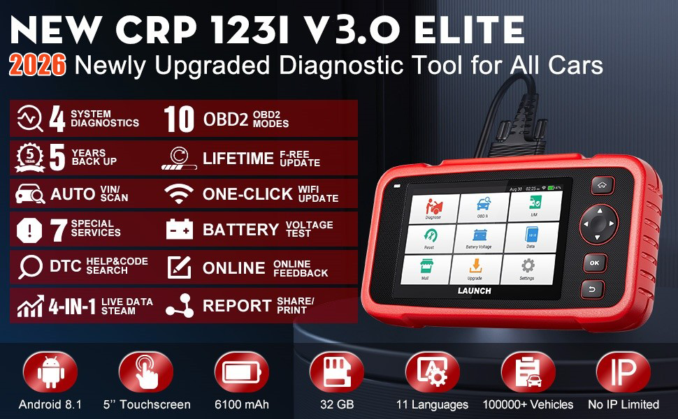2026 Neue Version LAUNCH CRP123i V3.0 OBD2-Scanner + 4 Systemdiagnosen + 7 Servicefunktionen zurücksetzen + VOLLSTÄNDIGE OBD2-Funktionen + lebenslanges kostenloses Online-Update